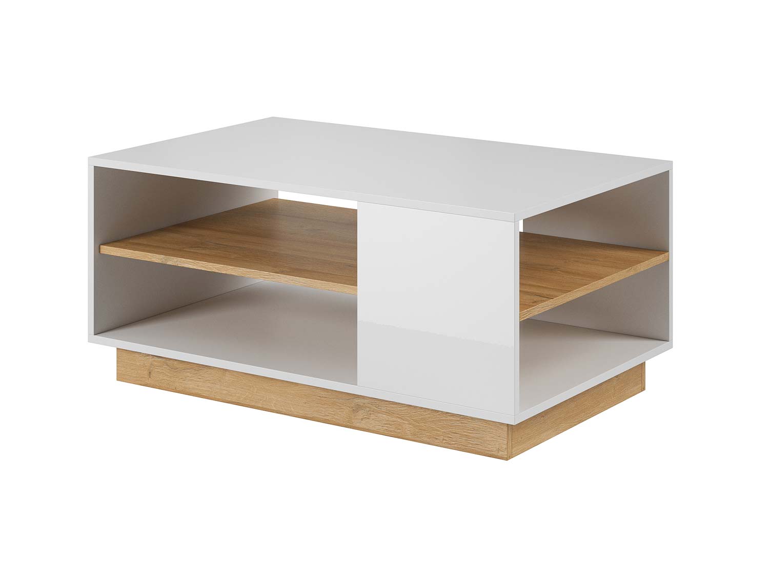 Biały stolik do kawy CLEOPATRA to gustowny i nowomodny mebel, który wspaniale spełni oczekiwania w aranżacji niejednego salonu czy pokoju dziennego. Ponadto doda im niepowtarzalnego, niezwykłego charakteru i elegancji. Co więcej mebel zrobiony został dla osób ceniących niebanalną stylistykę goszczącą w domach i mieszkaniach. Biały stolik do kawy posiada dużą półkę pod blatem, która wspaniale nadaje się do chowania książek, gazet, czasopism oraz pilota lub innych drobiazgów. W dodatku na powierzchni blatu bez problemu zmieści się dla filiżanka z kawą lub  z gorącą herbatą. Co ważne ławę wyróżnia modernistyczny styl oraz eleganckie wykończenie. Do tego do jej wytworzenia wykorzystano materiały wysokiej jakości. Stolik do kawy zrobiono z najlepszych płyt laminowanych, odpornych na wilgoć i zarysowania. Dodatkowo brzegi oklejono obrzeżem ABS, które sprawia, że stolik do kawy jest odporny na uszkodzenia mechaniczne i otarcia.