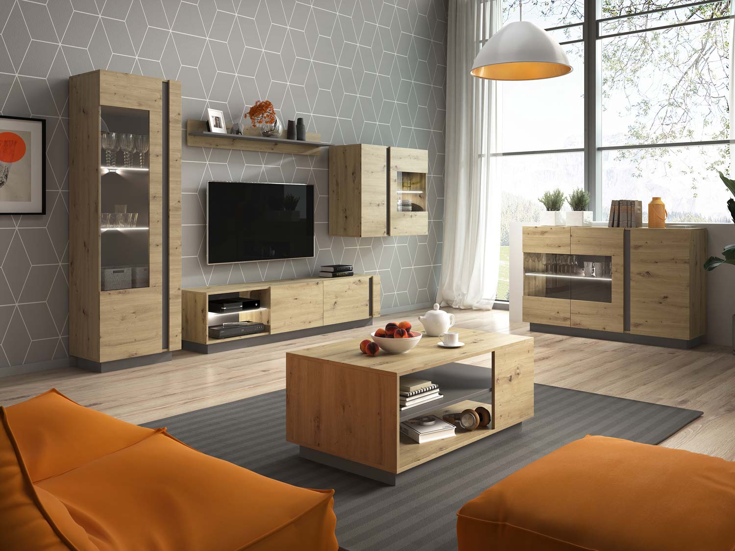 • dąb artisan/szary grafit,