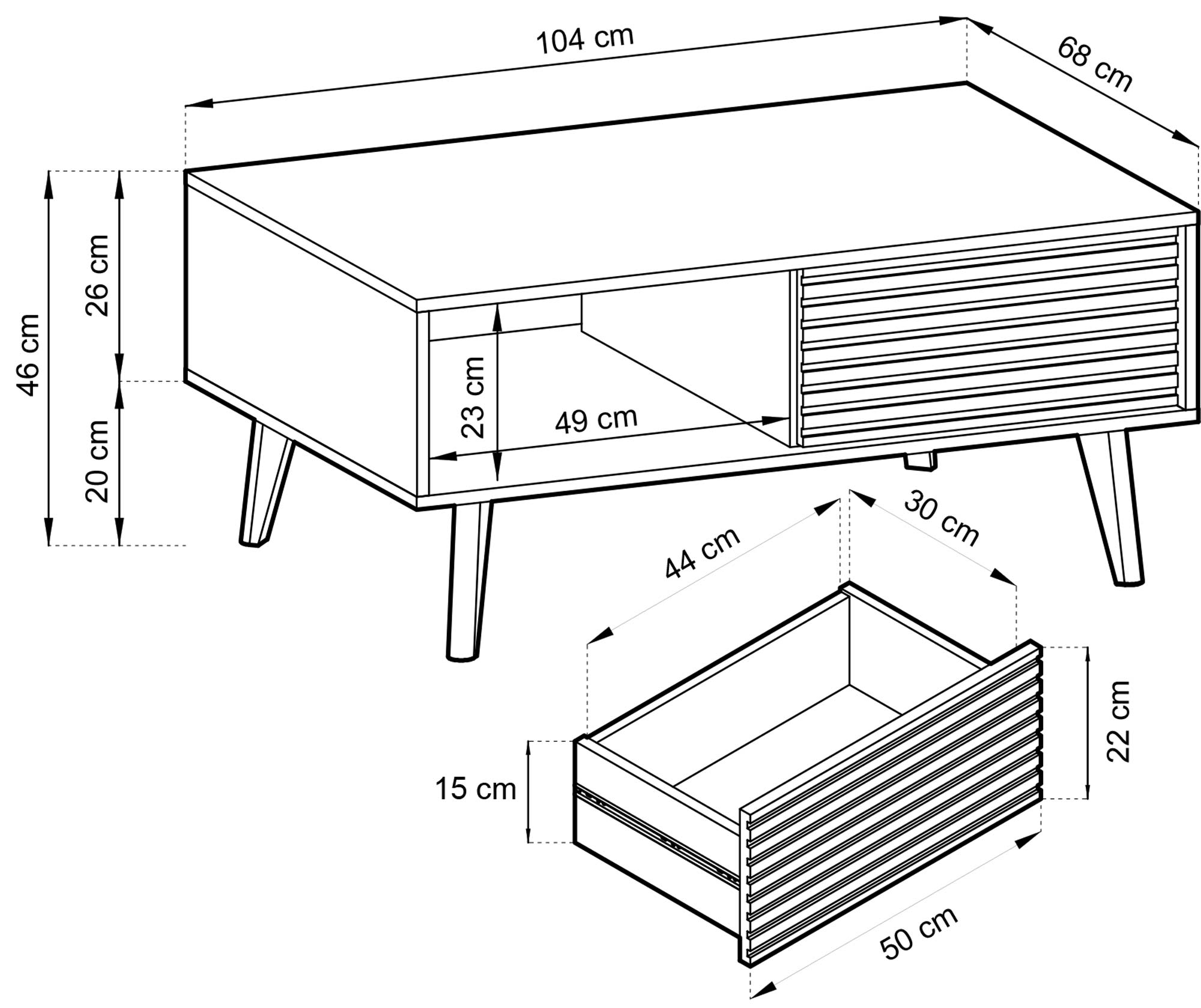 Głębokość: 68 cm / Szerokość: 104 cm / Wysokość: 48 cm