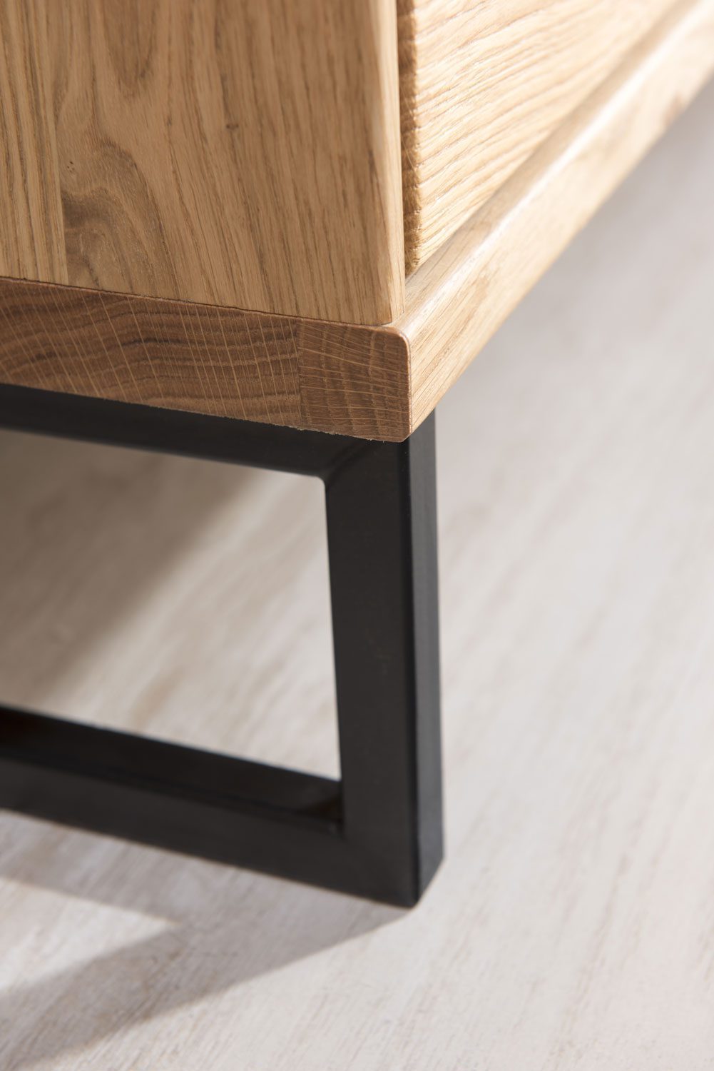 Stylowa i nowoczesna ława do salonu Taharo wykonana z najwyższej jakości komponentów idealnie dopasuje się do każdego wnętrza niejednej jadalni czy salonu. W dodatku mocna struktura oraz gustowne i awangardowe wykończenie sprawią, że ława industrialna świetnie udekoruje również pokój dzienny. Stolik zrobiono z płyty z doklejonymi warstwami dębowego drewna, całość fornirowana naturalnym dębem. Ponadto mebel jest solidny i praktyczny, jak również prezentuje się bardzo efektownie.