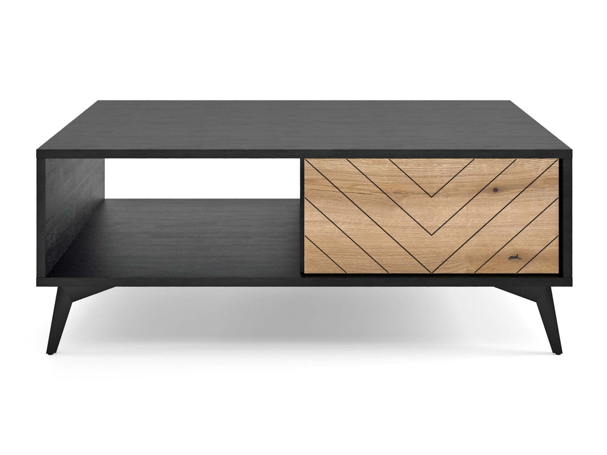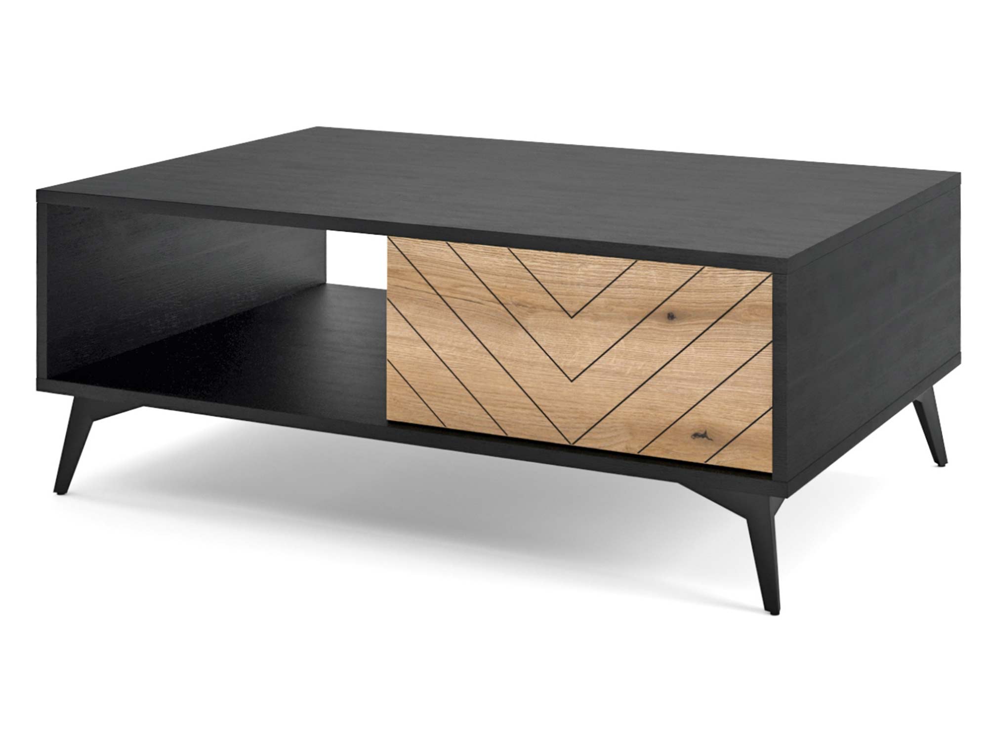 - Wyjątkowy design: Ława Diament łączy w sobie ciepło usłojenia Dąb Evoke z głębią koloru czarnego, tworząc mebel, który jest zarówno funkcjonalny, jak i estetycznie atrakcyjny.