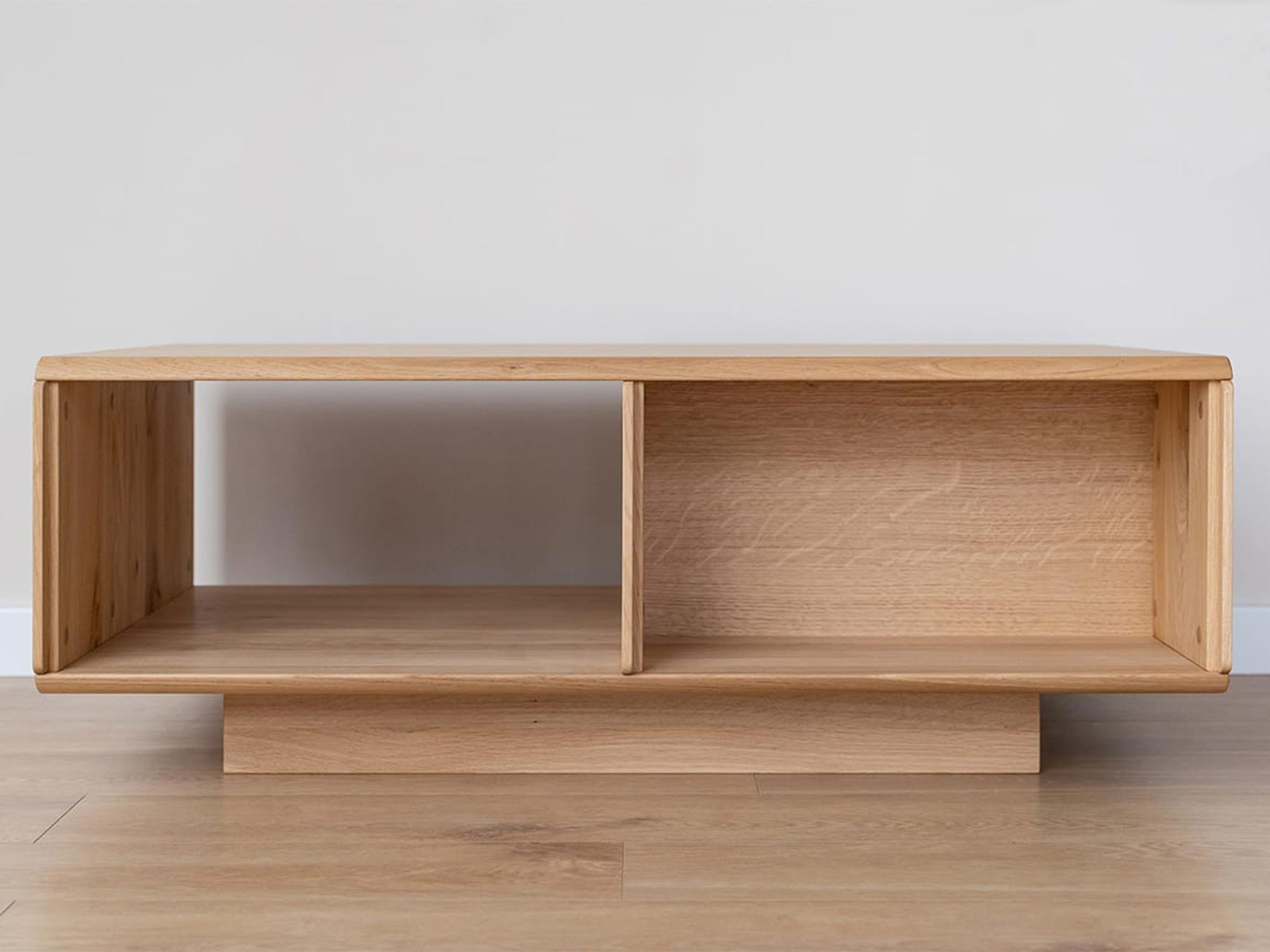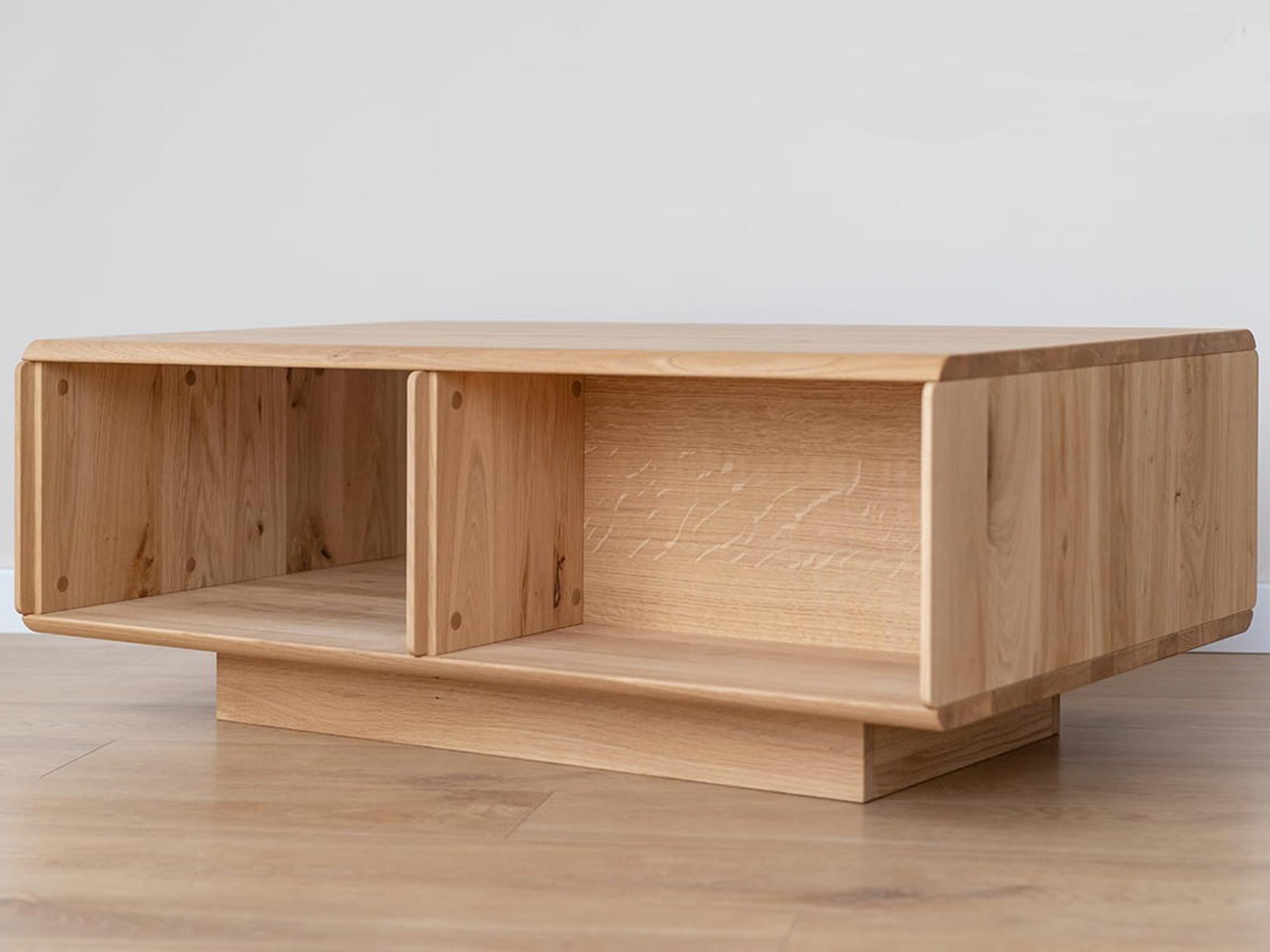 Stolik kawowy z litego dębu z otwartą półką i szufladą