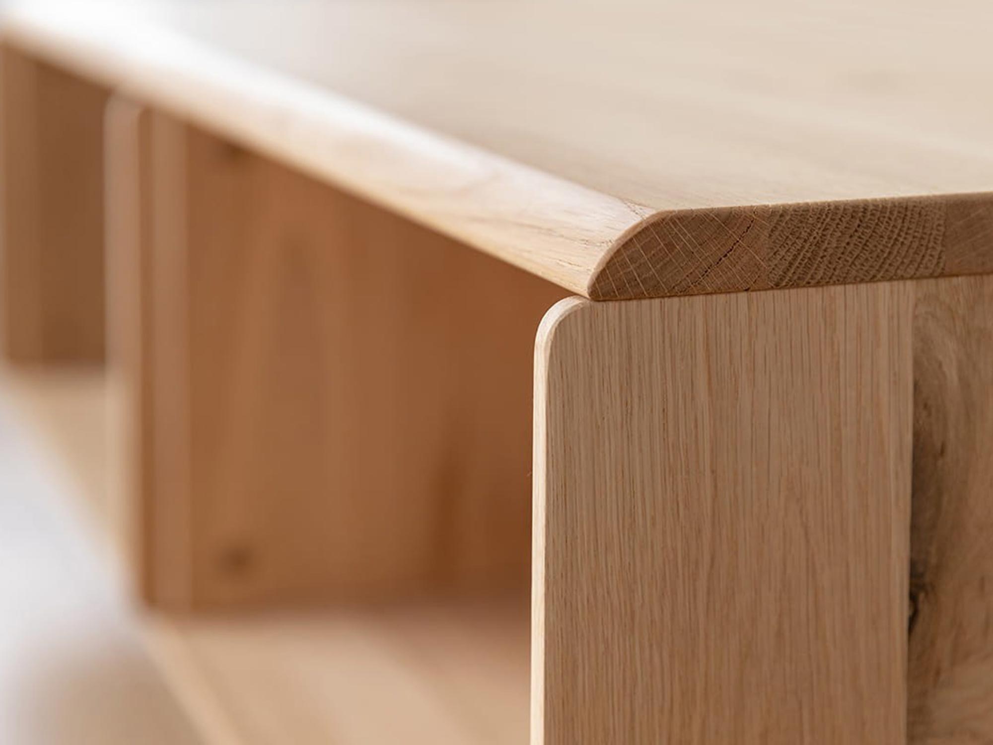 Detal bocznej listwy stolika z litego dębu