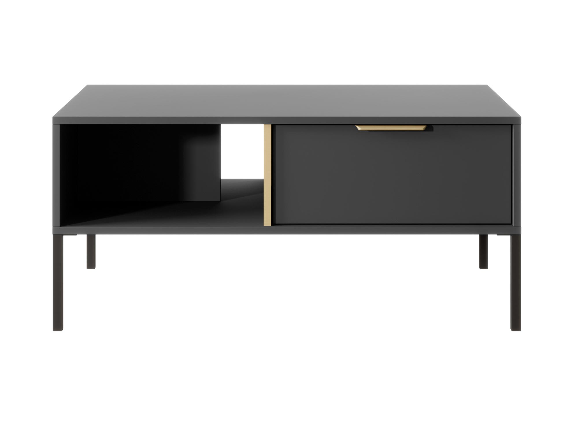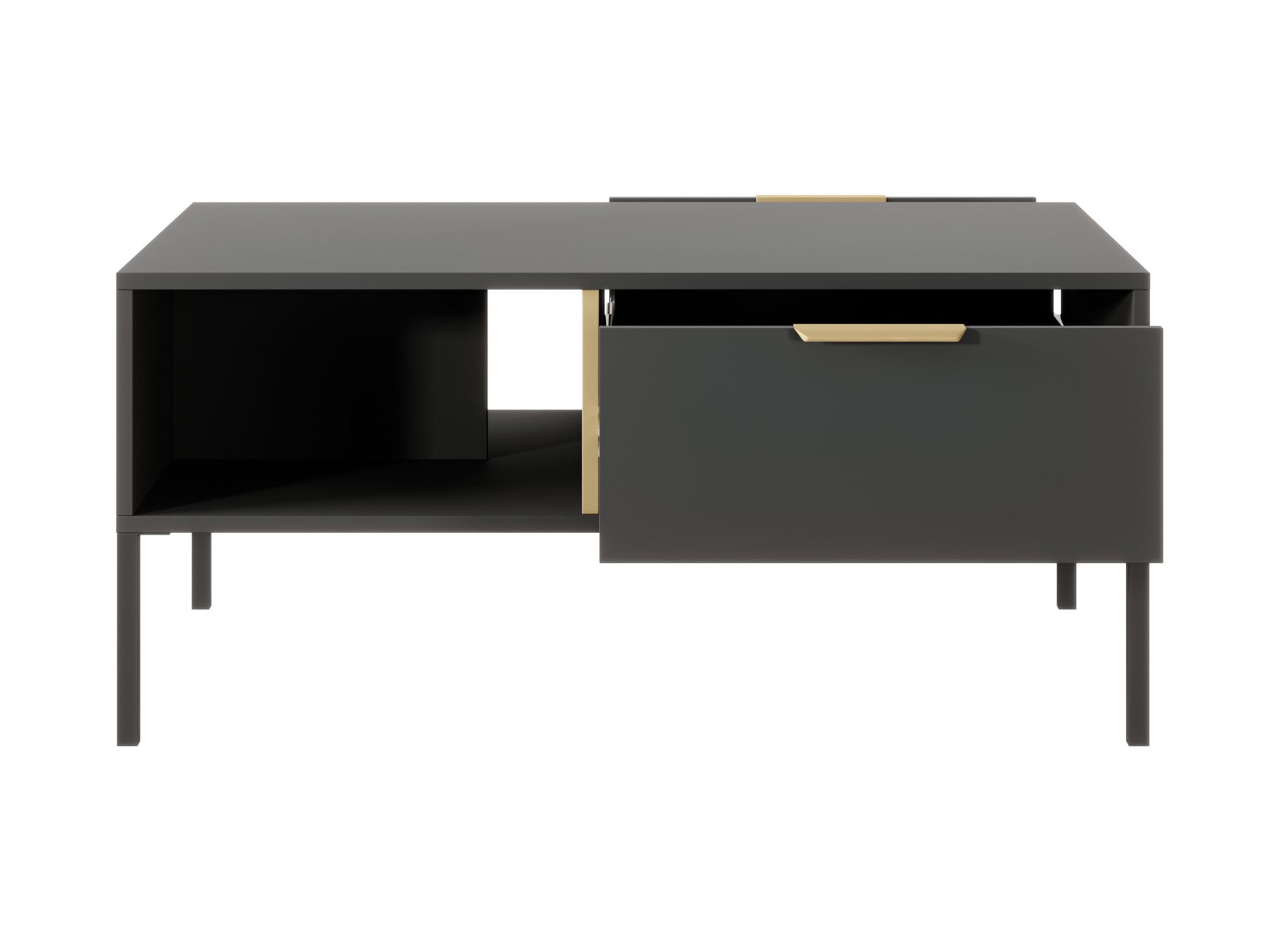 Nowoczesny stolik kawowy z czarnym blatem i złotymi uchwytami z otwartą półką