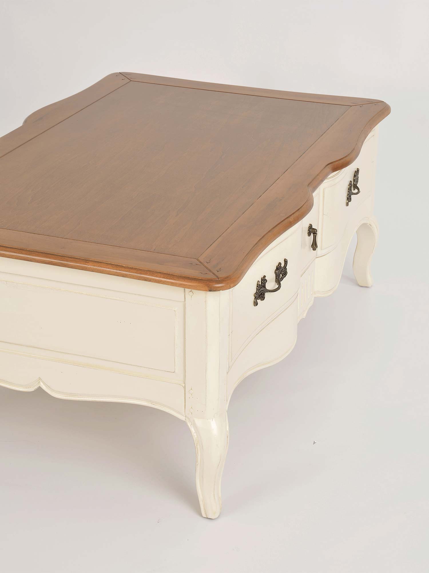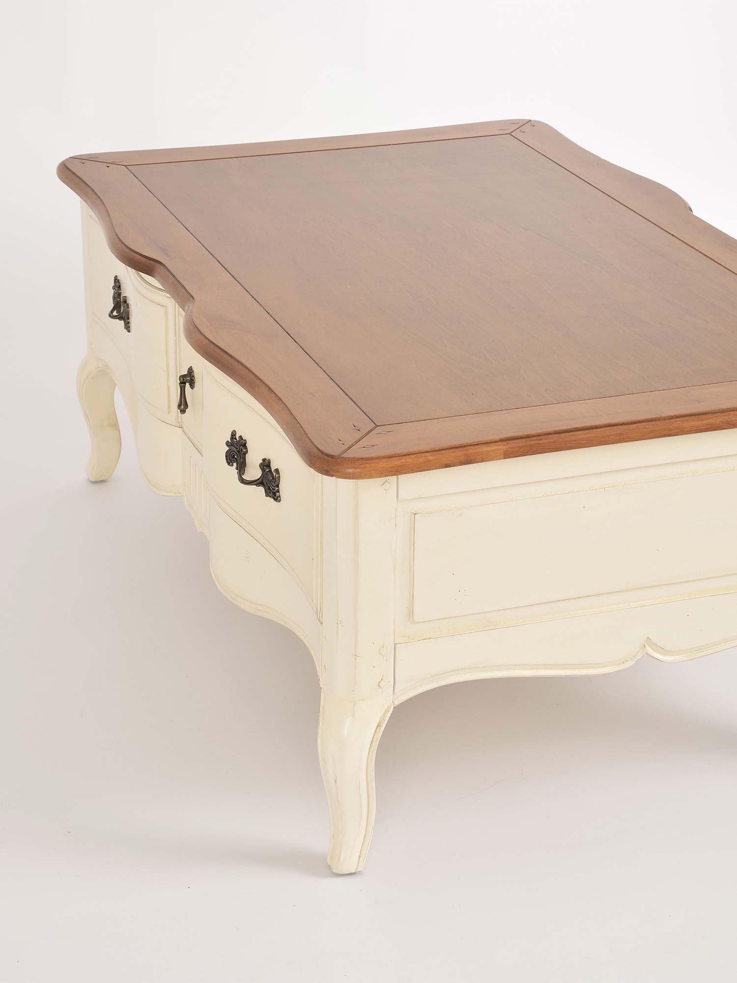 Stolik Kawowy Prowansalski z Blatem w Kolorze Miodowym i Kości Słoniowej – Verona