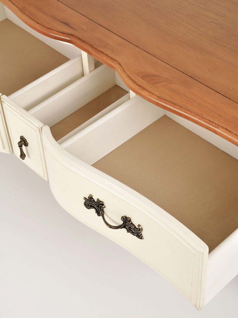 - Inne szczegóły: Frezowane nogi, połysk blatu, subtelne wykończenie w stylu prowansalskim