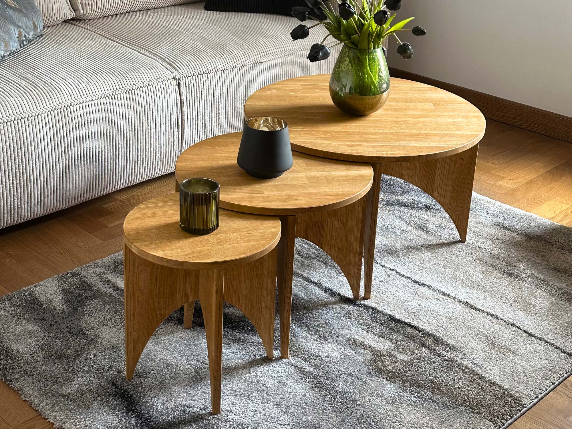 Zestaw Okrągłych Stolików Dębowych 3w1 – Taverno