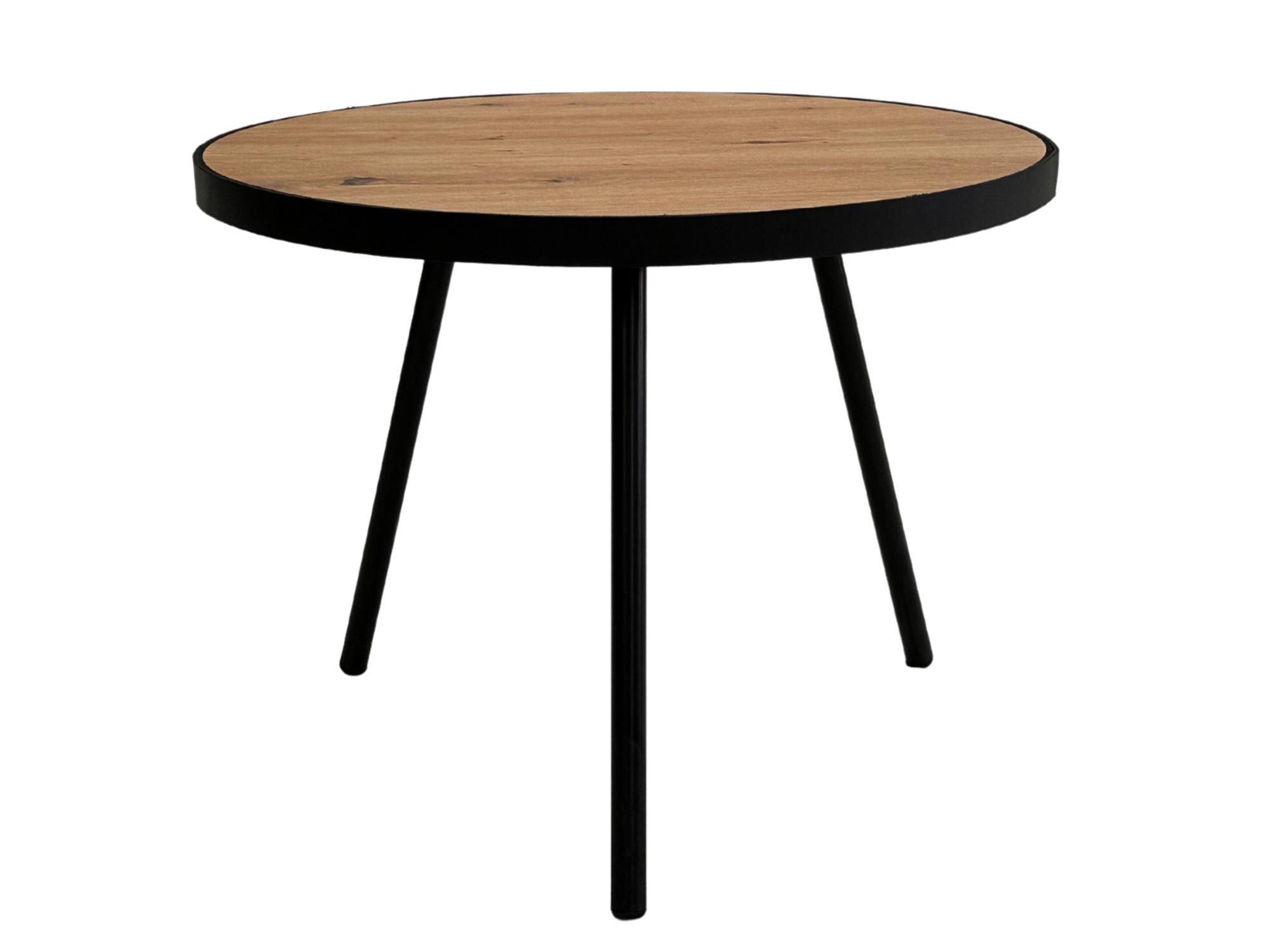 Blaty wykonano z odpornej na uszkodzenia i zabrudzenia płyty laminowanej w kolorze Dąb Artisan. Ich krawędzie wykończone zostały naturalną czarną skórą o grubości 25 mm, co nadaje meblom wyjątkowego charakteru. Stelaż z metalu malowanego proszkowo na czarno o profilu 20 mm jest nie tylko trwały, ale i estetyczny.