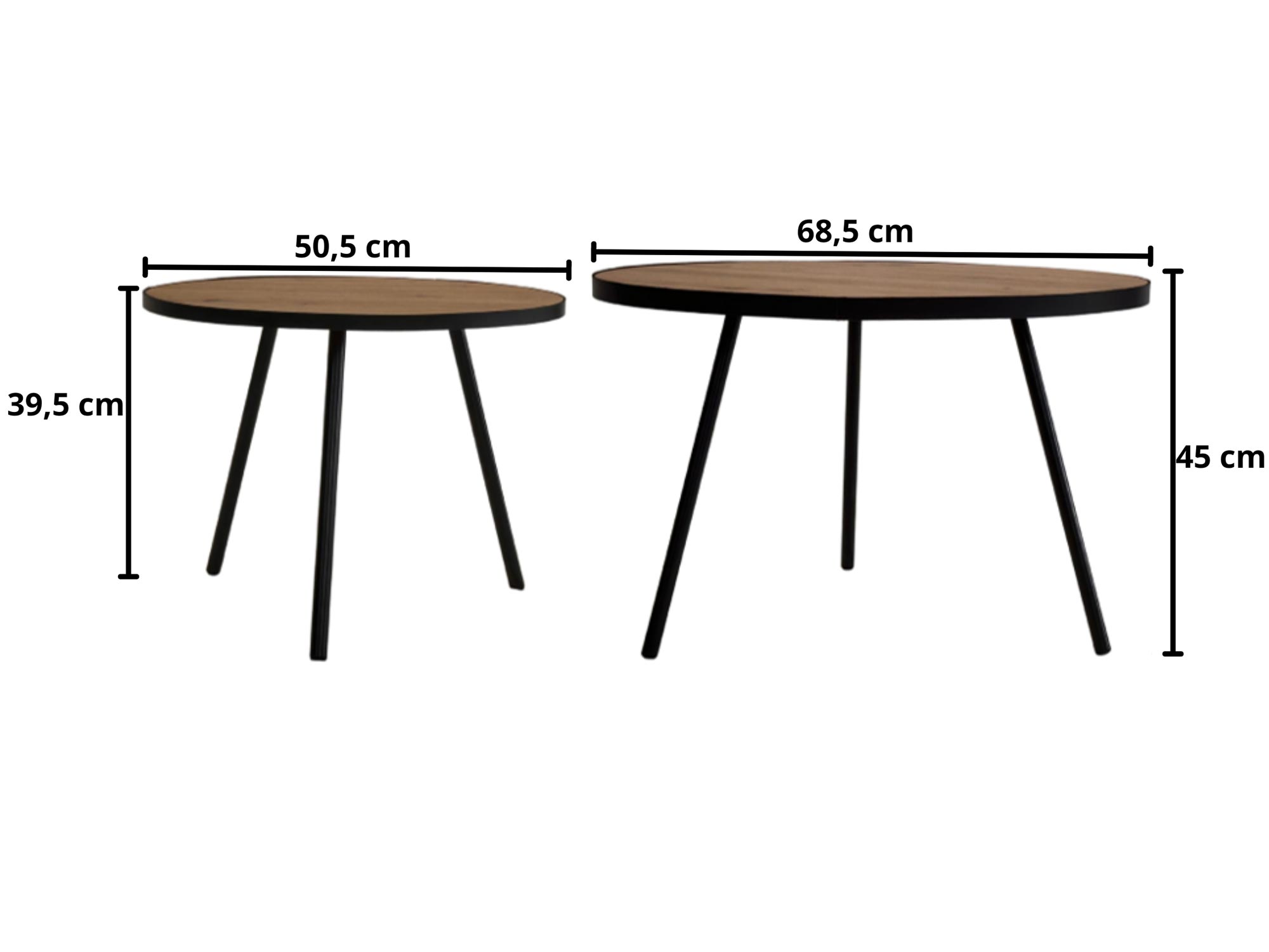 - Stolik większy: 68 cm średnicy / 39 cm wysokości