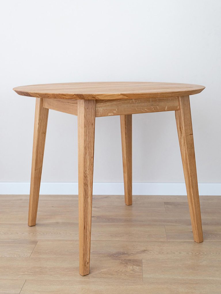 Wykonany z litego drewna dębu, stół Basic wyróżnia się wyjątkową trwałością oraz estetyką. Olejowane wykończenie podkreśla naturalne słoje drewna, dodając meblowi unikalnego uroku. Ciepły, złocisty odcień drewna doskonale komponuje się z każdym kolorem ścian oraz dodatkami, co czyni go idealnym dla miłośników skandynawskich wnętrz utrzymanych w lekkim wizualnie stylu. Ponadto, dzięki naturalnym cechom drewna, każdy stół jest wyjątkowy oraz niepowtarzalny.