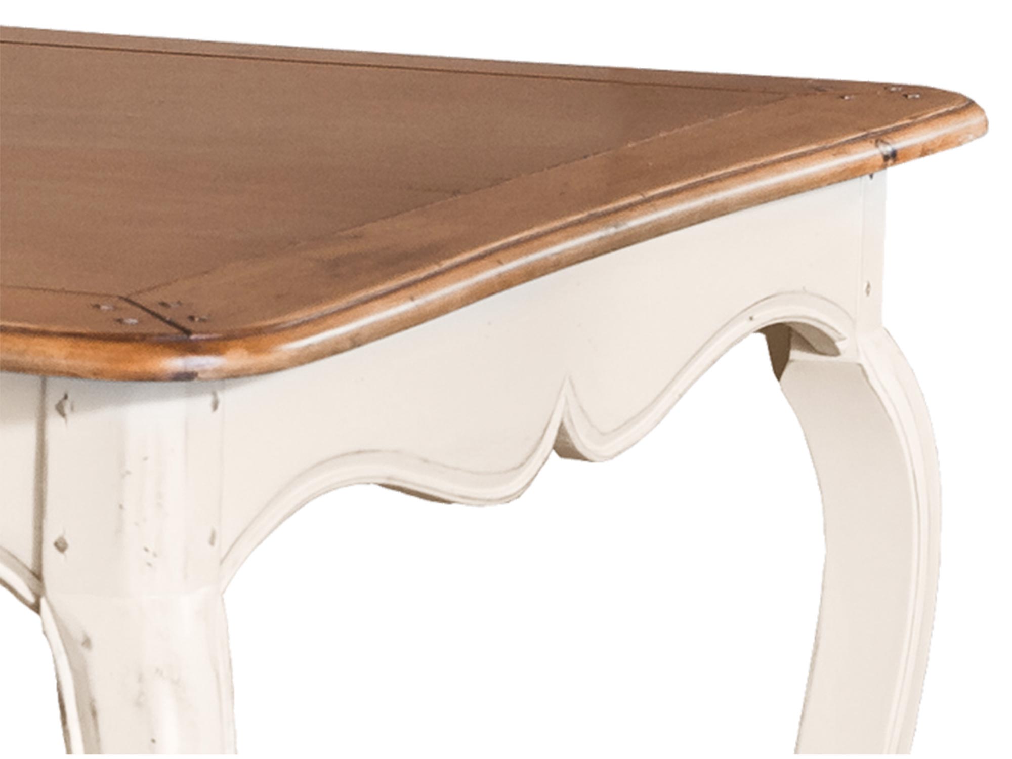 Stół Verona to prawdziwa ozdoba w stylu prowansalskim, łącząca elegancki wygląd z trwałością. Wykonany z drewna brzozy, korpus w kolorze kości słoniowej posiada subtelne przetarcia, które nadają meblowi wyraźny, vintage’owy charakter. Miodowy blat w połysku oraz ozdobne kornikowanie dopełniają stylizację, nadając temu stołowi ciepły, rustykalny wygląd. Charakterystyczne ćwieki na blacie i korpusie wprowadzają do wnętrza subtelny akcent. Gięte, frezowane nogi to kolejny element, który sprawia, że stół Verona jest nie tylko funkcjonalny, ale również elegancki. Doskonały wybór do stylowych jadalni czy przestronnych salonów.