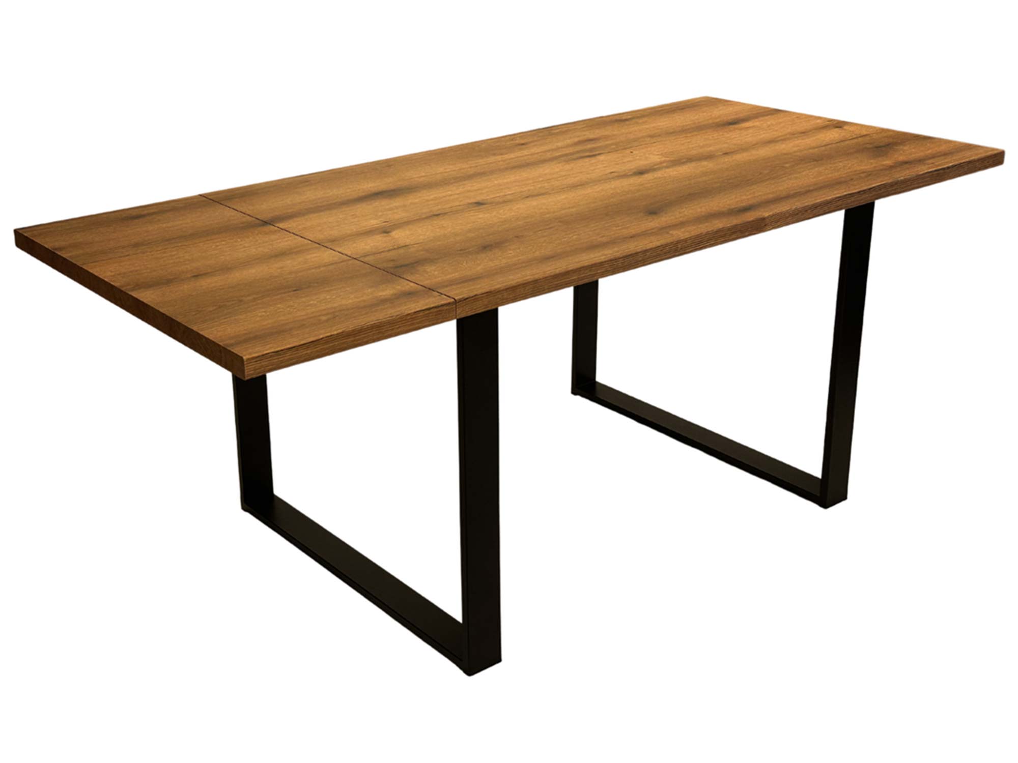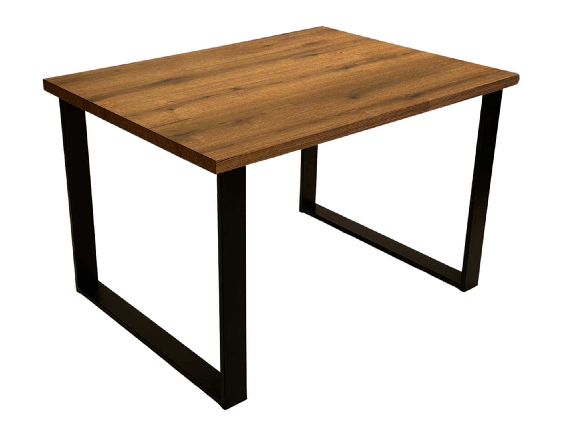 Metalowe płozy o profilu 80×20 mm, malowane proszkowo na kolor czarny, zapewniają wysoką stabilność i wpisują się w loftowy charakter mebla. Dodatkowo rozstaw nóg został zoptymalizowany w zależności od rozmiaru stołu, co zwiększa komfort użytkowania przy zachowaniu lekkości konstrukcji.
