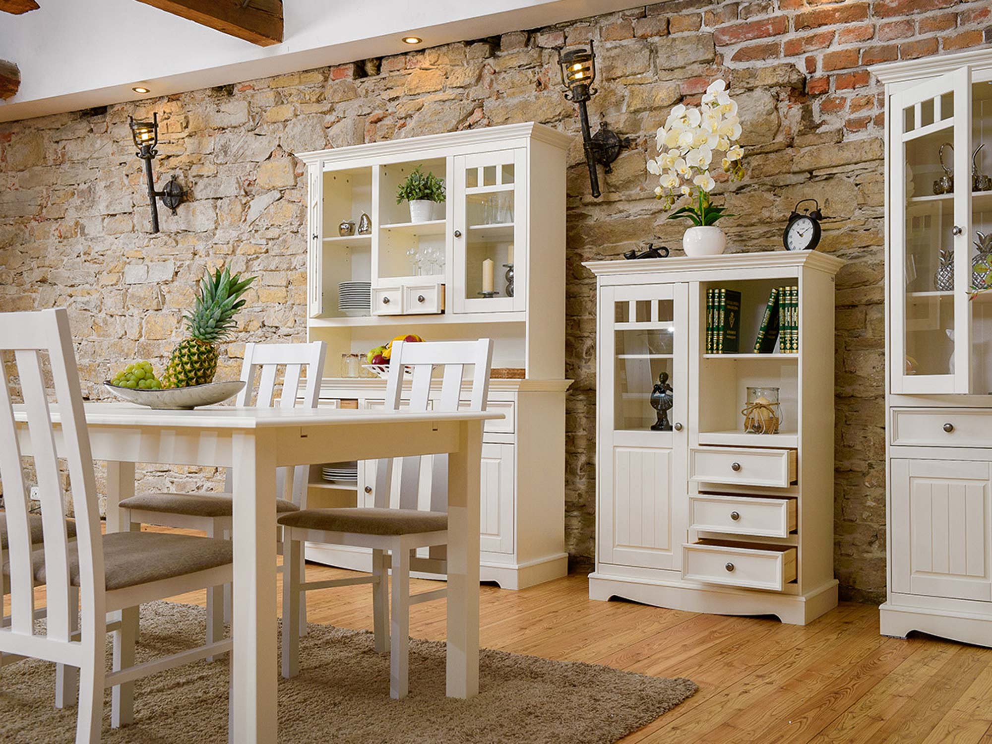 Przede wszystkim oferowany stół rozkładany biały INGRID to mebel wysokogatunkowy, wyprodukowany w Polsce. Materiałem wykonania jest lite drewno sosny fińskiej, co gwarantuje solidność wykonania oraz trwałość na długie lata przy odpowiedniej pielęgnacji. Dodatkowo kilka wariantów wybarwienia blatu pozwala na swobodny dobór mebla swojej aranżacji, a odcień ciepłej bieli z pewnością wniesie do wnętrza ciepło.