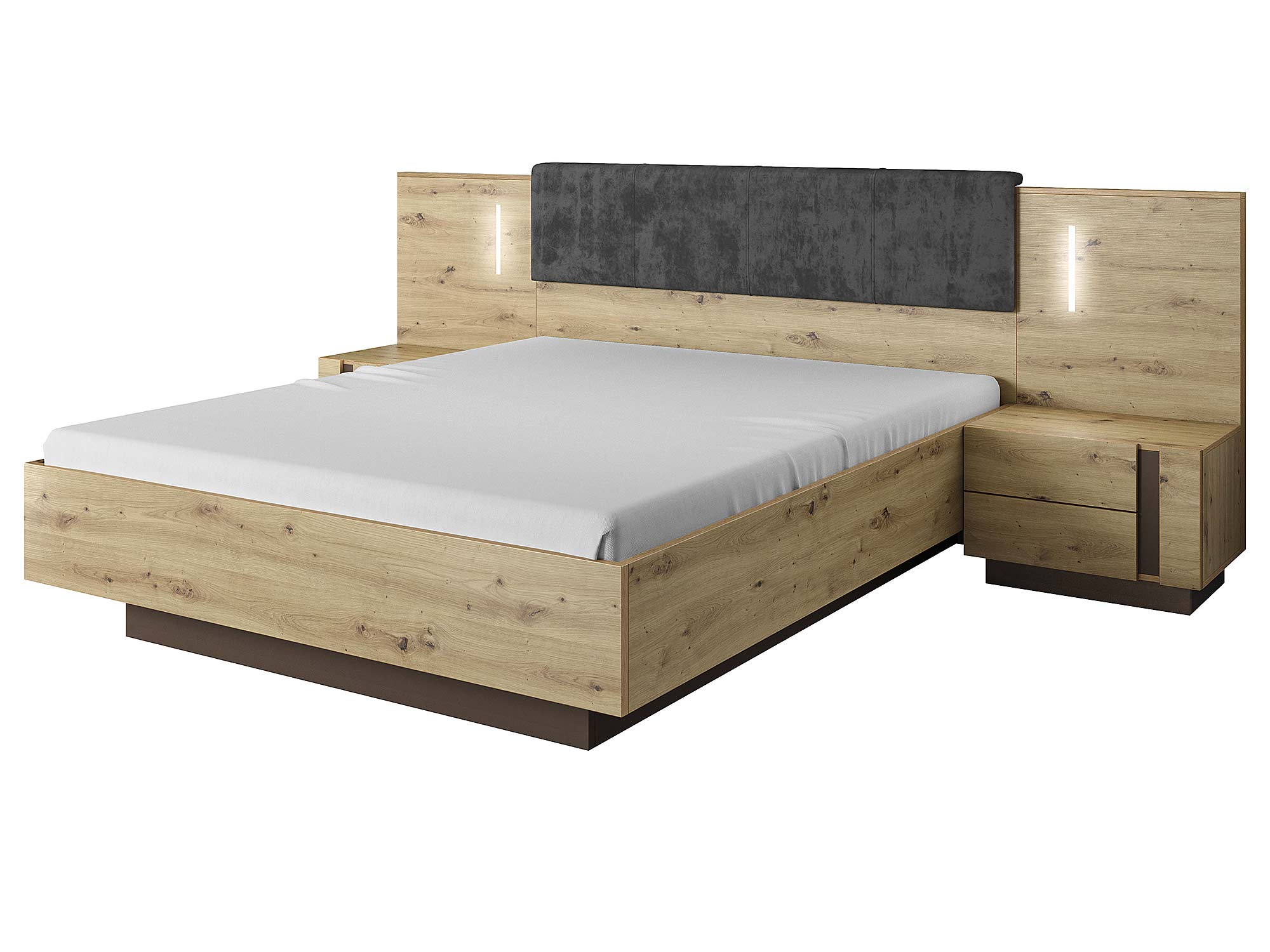 Oferujemy zestaw dwóch funkcjonalnych stolików nocnych, które świetnie wpasuje się do niemal każdej sypialni. Dodatkowo meble w całości wykonane są z najwyższej jakości materiałów. Ponadto szafki nocne dostępne są w dwóch kolorach tzw. biały z wstawkami dąb grandson oraz dąb artisan z wstawkami szary grafit.