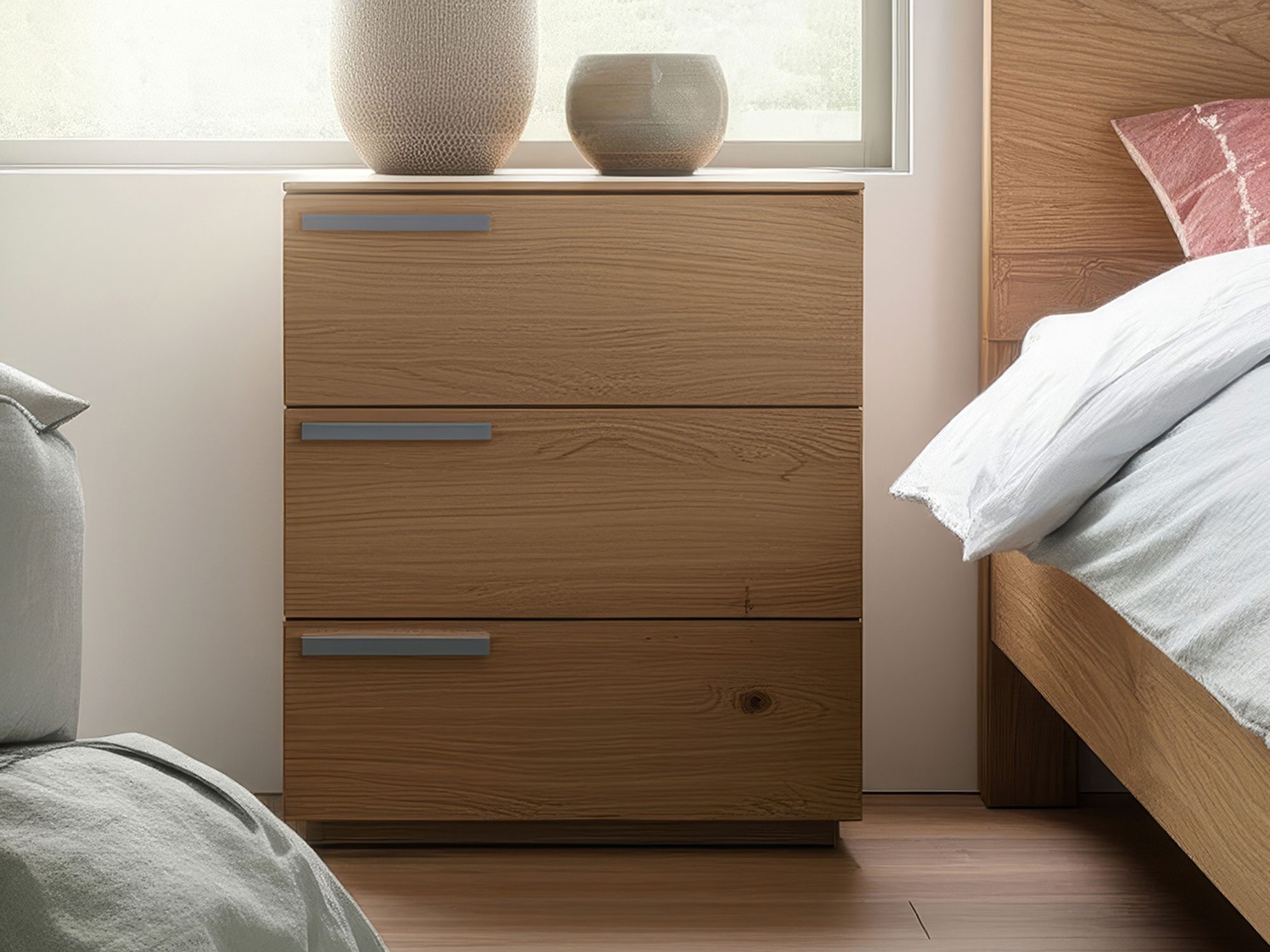 Wyobraź sobie wieczór w sypialni pełnej harmonii. Światło lampki odbija się w naturalnym usłojeniu dębu, a szuflada zamyka się bezszelestnie – jakby chciała powiedzieć: „odpocznij”. Taka właśnie jest elegancka drewniana szafka nocna Arella 3L-RE – mebel, który łączy piękno natury, solidne wykonanie i codzienną wygodę. Wykonana z litego dębu, wykończona olejowoskiem i wyposażona w trzy pojemne szuflady z systemem Softclose Haefelle, oferuje wszystko, czego potrzebujesz przy łóżku: praktyczność, estetykę i trwałość.