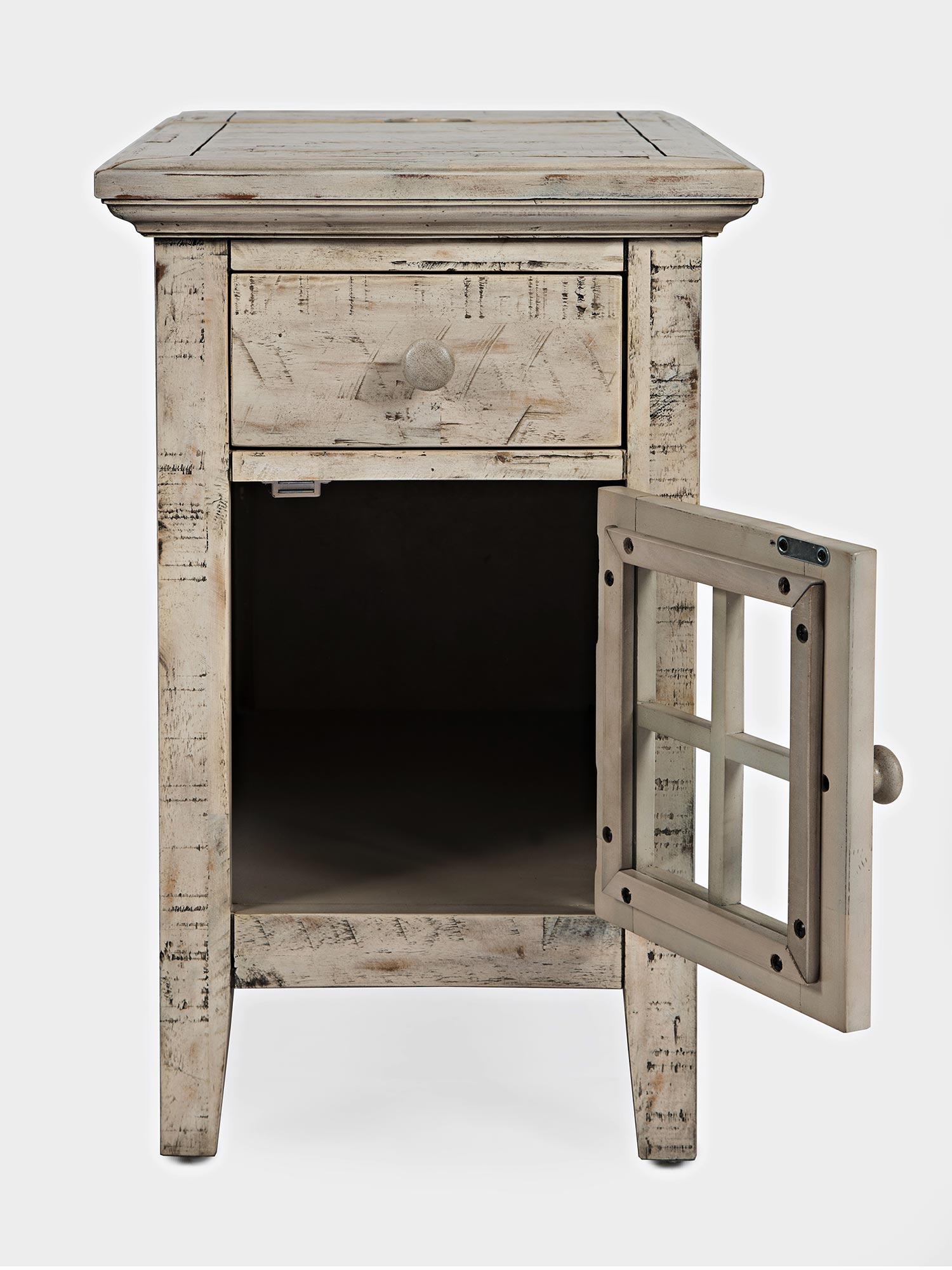 Stylowa i funkcjonalna szafka nocna w kolorze kości słoniowej, która idealnie wkomponuje się w każde rustykalne wnętrze. Wykonana z wysokiej jakości drewna akacji, z charakterystycznymi przetarciami w stylu shabby chic. Dzięki wbudowanemu gniazdu USB, szafka staje się nie tylko elegancka, ale i niezwykle praktyczna – doskonała do sypialni, gdzie funkcjonalność idzie w parze z estetyką. Idealny wybór dla osób, które szukają mebla łączącego klasyczny wygląd z nowoczesnymi rozwiązaniami.