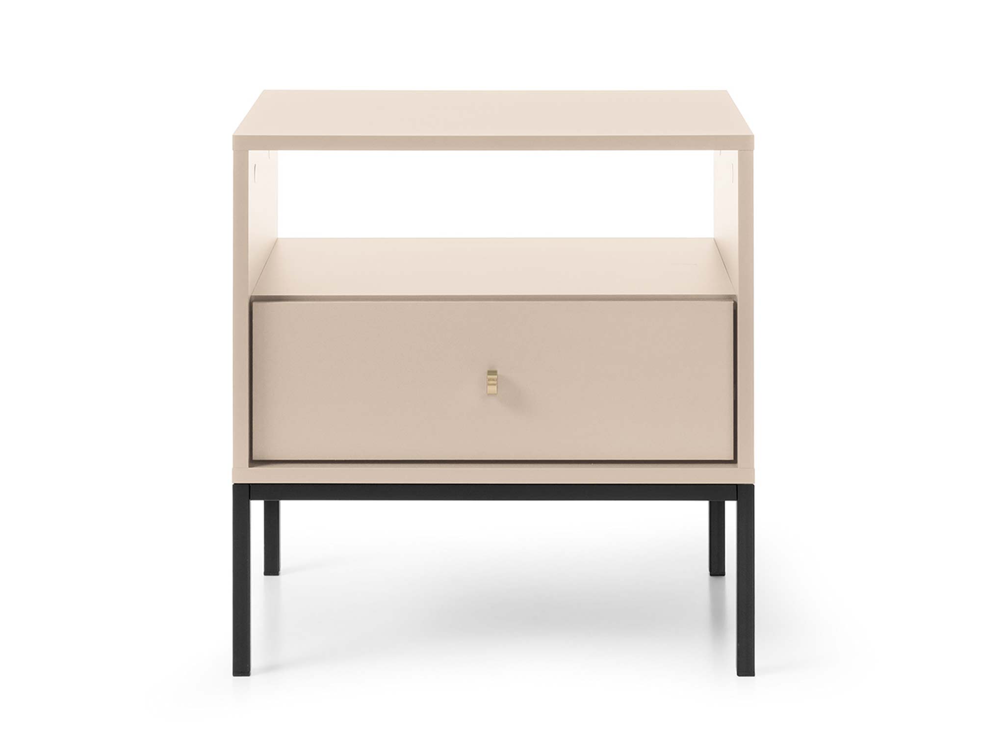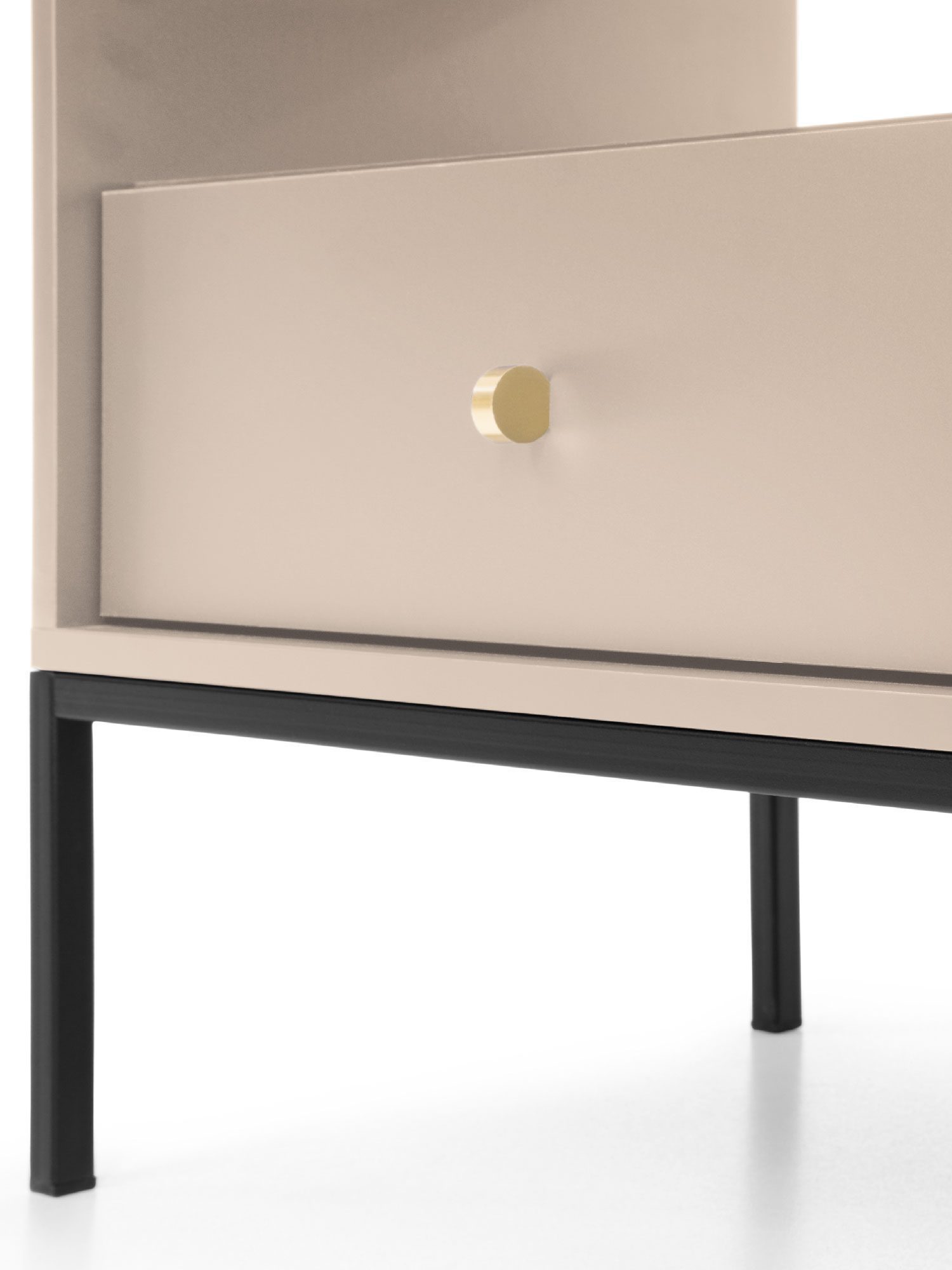 Odkryj niezrównane połączenie stylu i praktyczności z Stolikiem Nocnym MS 54 Monolit. Zaprojektowany z myślą o miłośnikach minimalistycznego, ale wyrafinowanego designu, ten stolik nocny wyróżnia się subtelnym połączeniem trzech nowoczesnych kolorów: beż piaskowy, bordo i granat, każdy z nich uszlachetniony złotym uchwytem. Uniesiony na delikatnej czarnej podstawie, stolik jest nie tylko praktycznym dodatkiem do Twojej sypialni, ale również wyrafinowanym elementem dekoracyjnym.