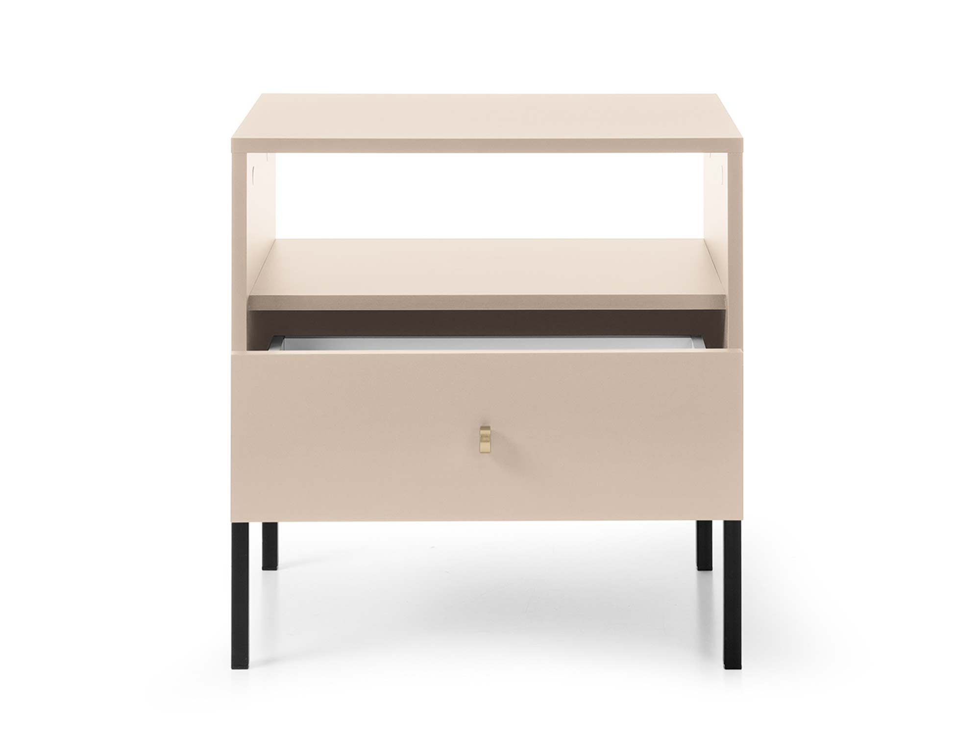 - Przechowywanie w zasięgu ręki: Otwarta półka i pojemna szuflada zapewniają miejsce na książki, okulary, urządzenia mobilne i inne przedmioty, które chcesz mieć pod ręką, utrzymując jednocześnie porządek i harmonię w sypialni.