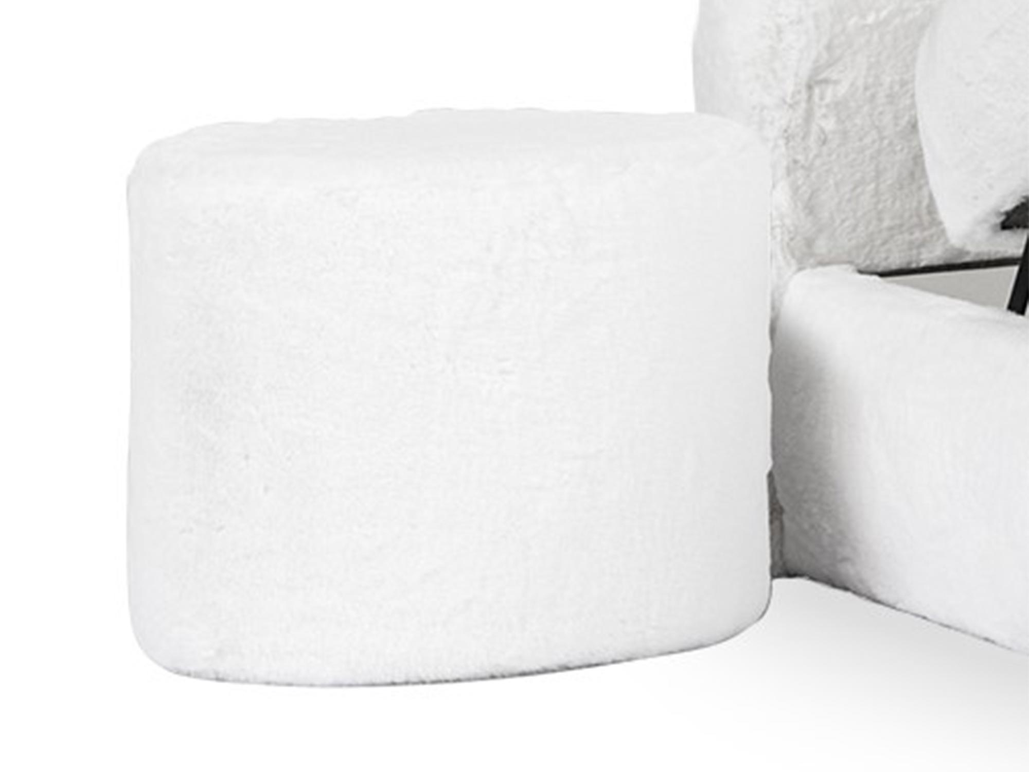 Okrągły biały puf z pluszowym obiciem, nowoczesny