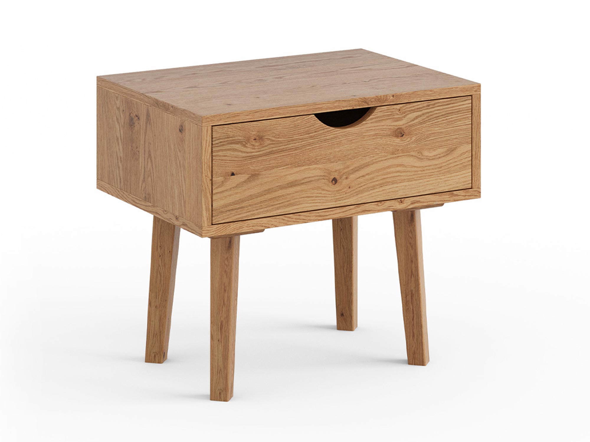 Skandynawska Szafka Nocna Lina wyróżnia się naturalnym pięknem drewna. Wykonana z litego dzikiego dębu, szafka ta charakteryzuje się wyjątkową trwałością i estetyką. Olejowane wykończenie podkreśla naturalne słoje drewna, dodając meblowi unikalnego uroku. Dzięki temu, szafka ta staje się centralnym punktem każdej sypialni, wprowadzając do niej ciepło i przytulność. Dlatego warto zainwestować w mebel, który łączy w sobie naturalne piękno i funkcjonalność.