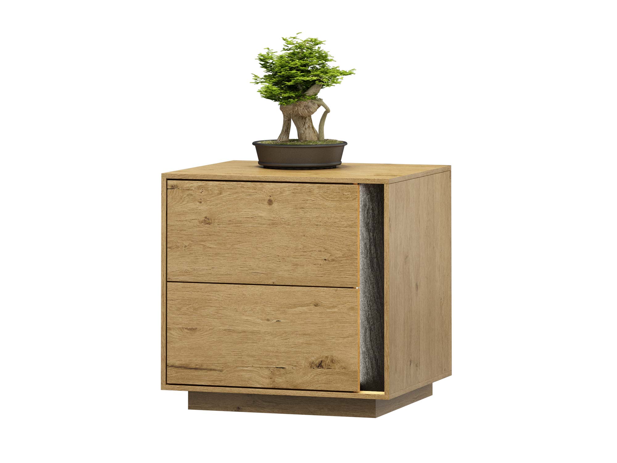 Szafka nocna Beloria to połączenie estetyki i praktyczności. Jej pocienione elementy nadają lekkości, a naturalna okleina z elementami litego drewna podkreśla autentyczny charakter. System push to open sprawia, że otwieranie frontu odbywa się intuicyjnie – bez uchwytów, co pozwala zachować minimalistyczną bryłę.