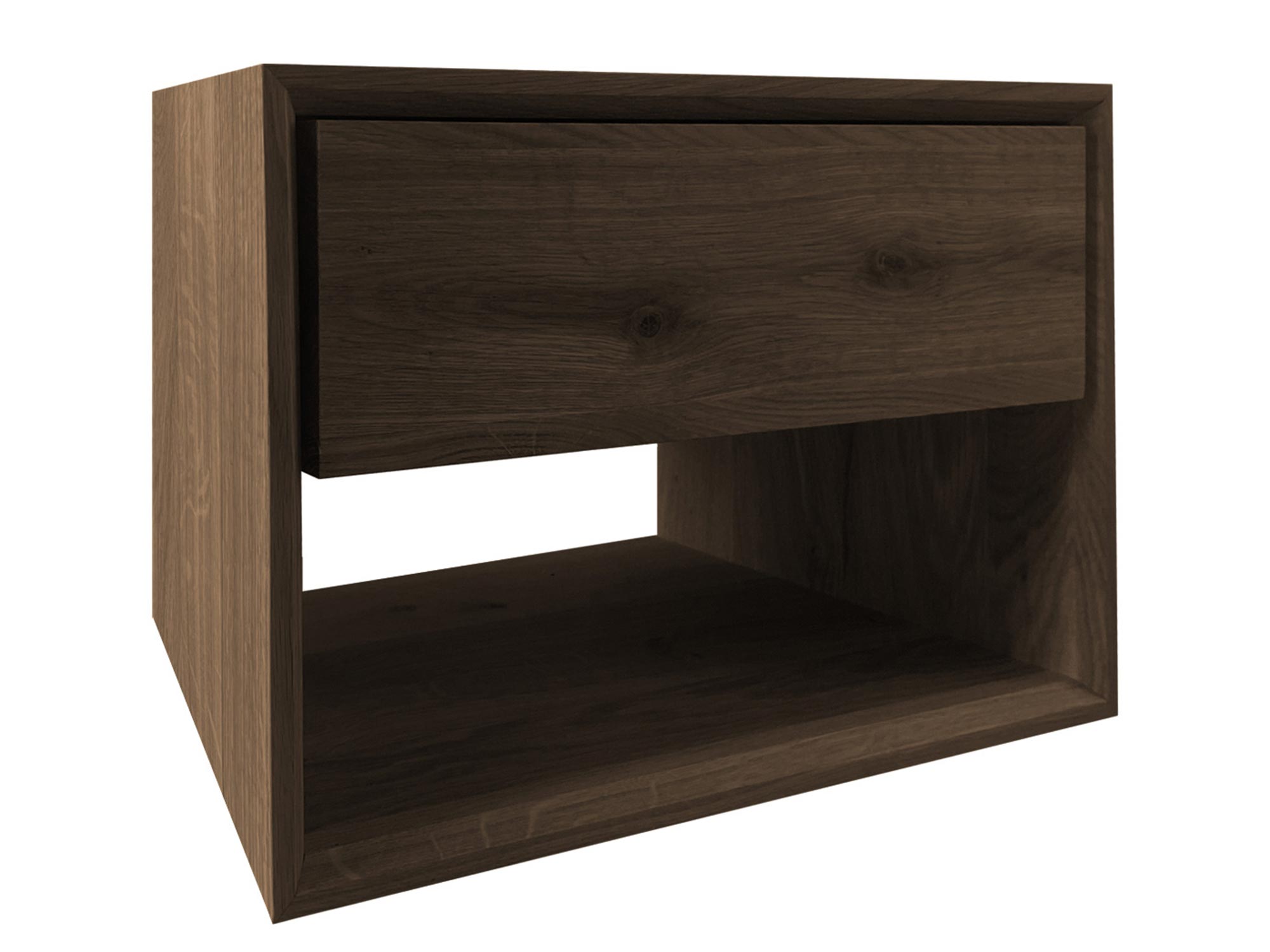 Kwadratowa szafka nocna z otwartą półką z drewna dębowego