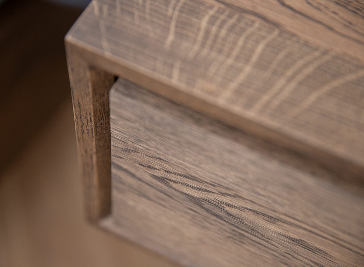 Szafka nocna Sogno, wykonana z najwyższej jakości dębu dymionego, charakteryzuje się prostą, ale elegancką formą. Idealnie nadaje się jako dodatek do łóżka, tworząc przytulną i funkcjonalną przestrzeń w sypialni. Jej geometryczna bryła doskonale komponuje się z innymi elementami wyposażenia wnętrza.