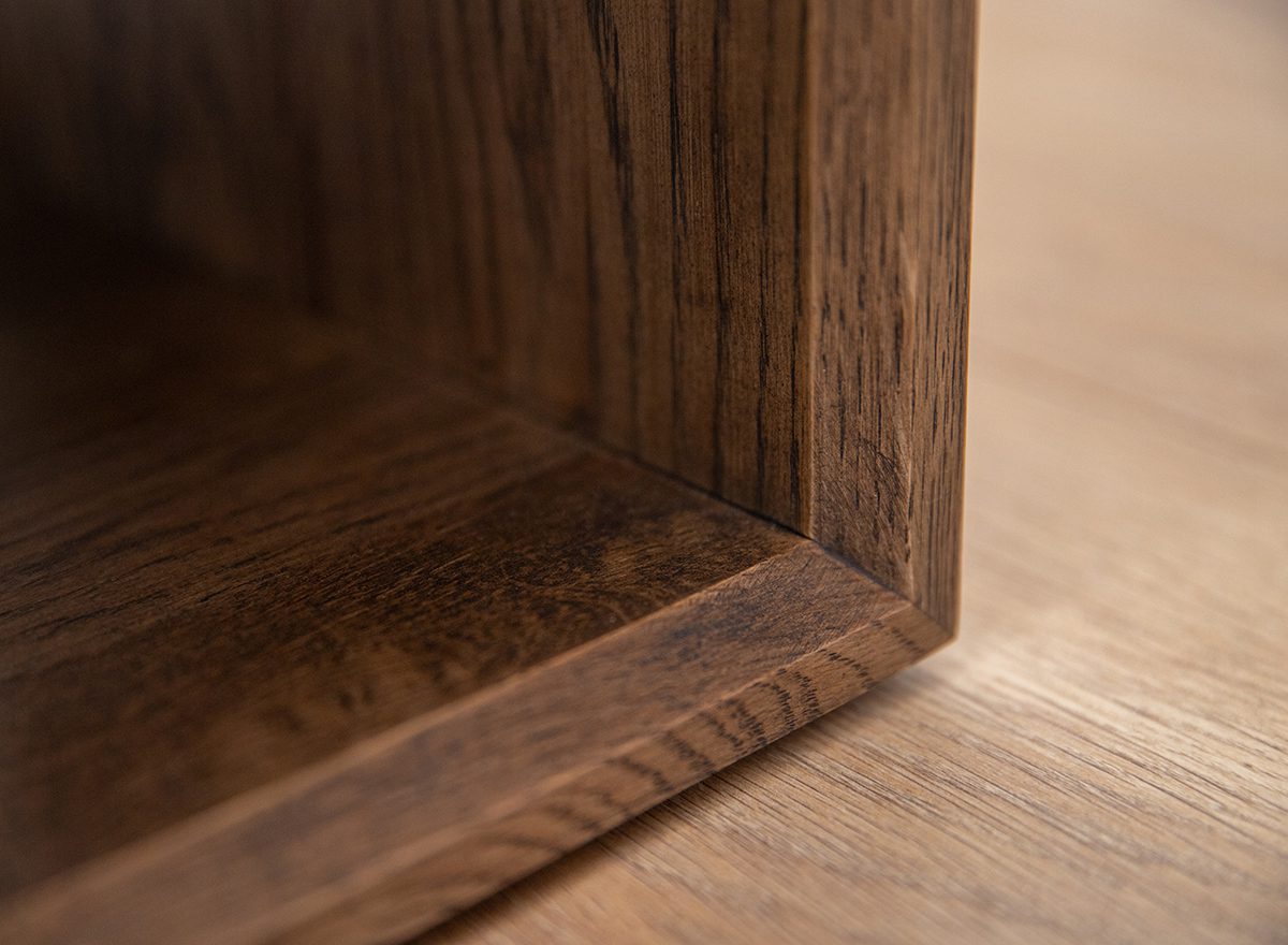 Wnętrze szafki z ciemnego dębu z naturalnym wykończeniem