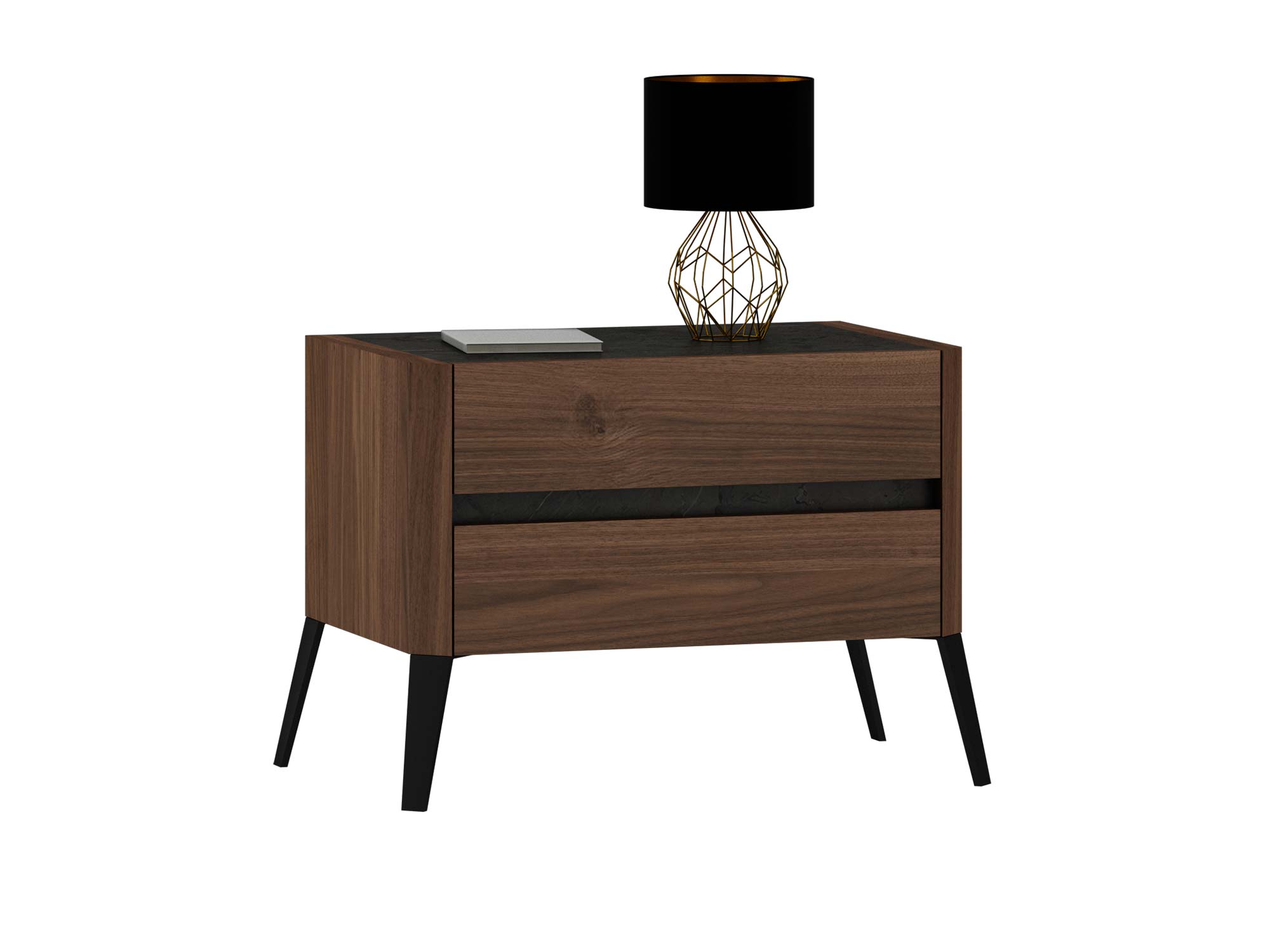 Szafka nocna Lumeria to mebel, który idealnie łączy klasykę z nowoczesnością. Jej konstrukcja została oparta na prostych, geometrycznych liniach, które wprowadzają do sypialni harmonię i porządek. Kolor orzech baltimore ociepla aranżację, nadając jej przytulnego charakteru, a szary blat z kamienia dodaje nowoczesnego kontrastu. To zestawienie sprawia, że szafka sprawdzi się zarówno w aranżacjach klasycznych, jak i minimalistycznych.