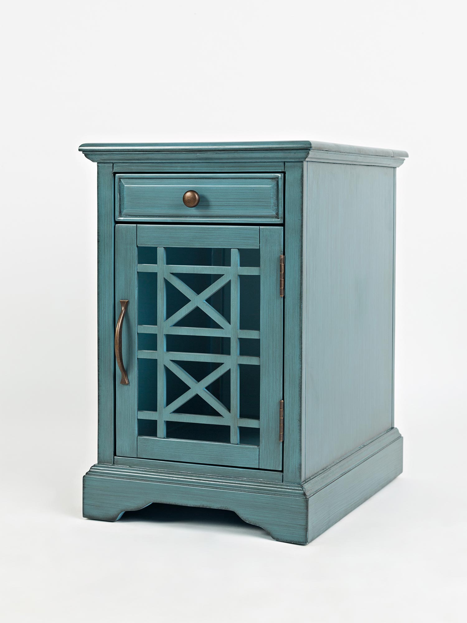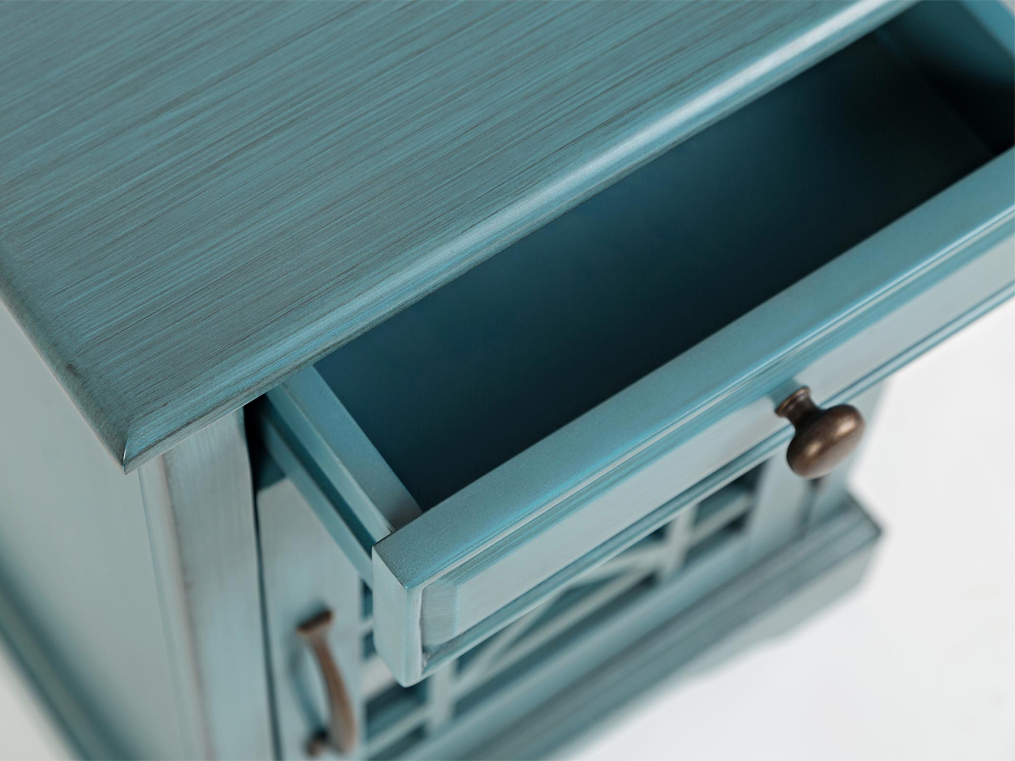 Szafka nocna niebieska z ozdobnymi szprosami i szufladą – Avola