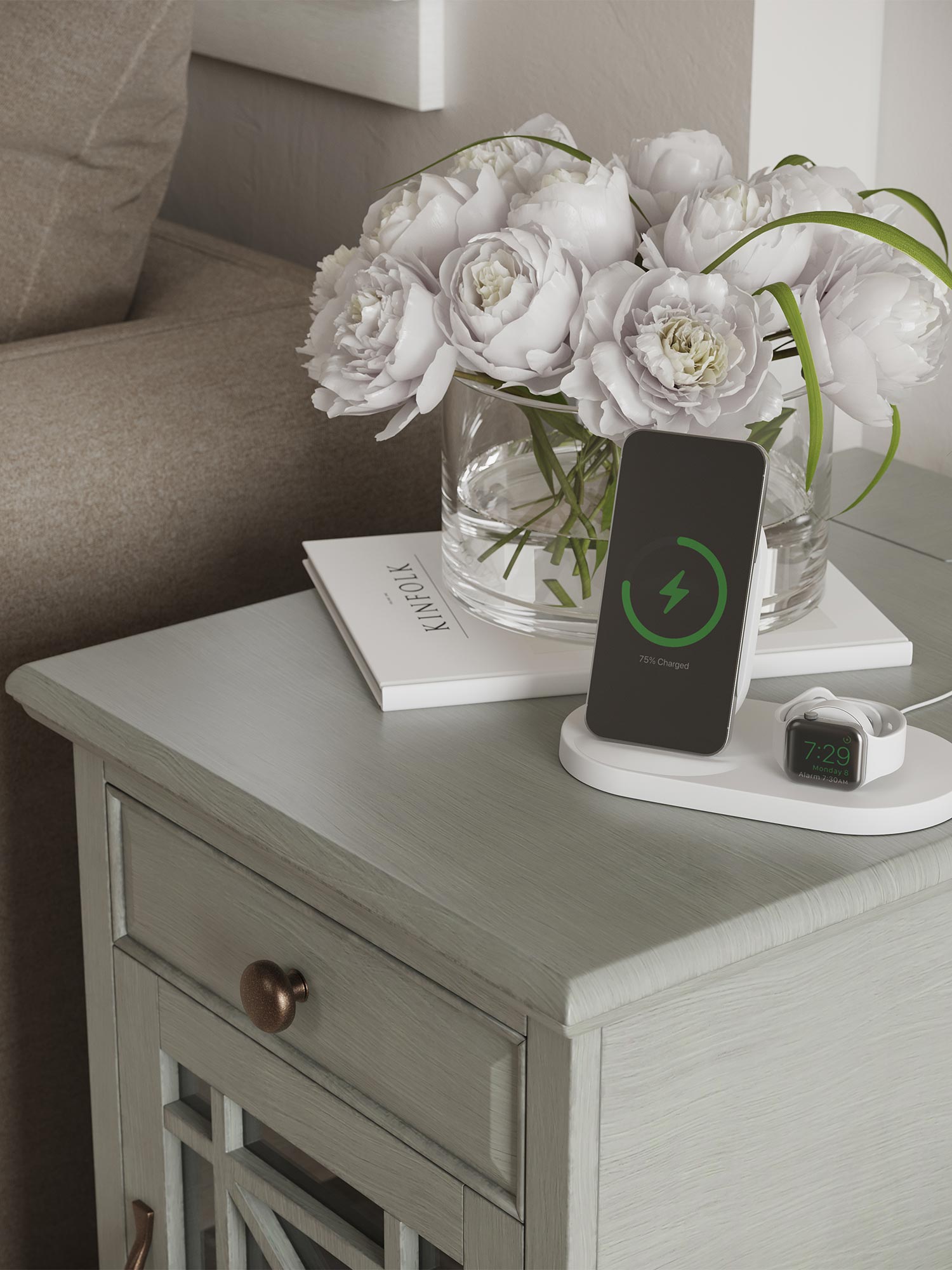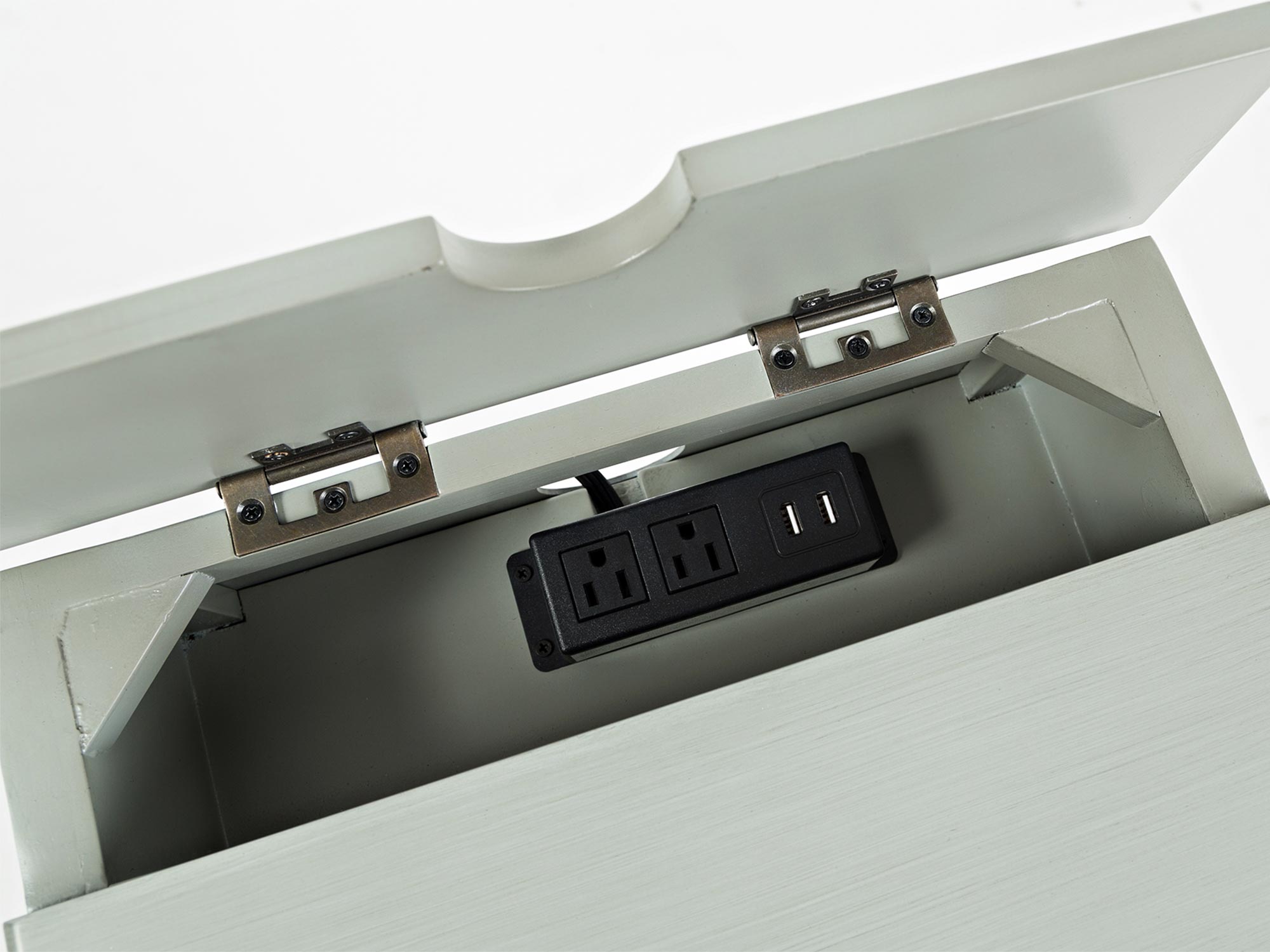 - Wbudowane gniazdo i port USB, idealne do ładowania urządzeń w sypialni.