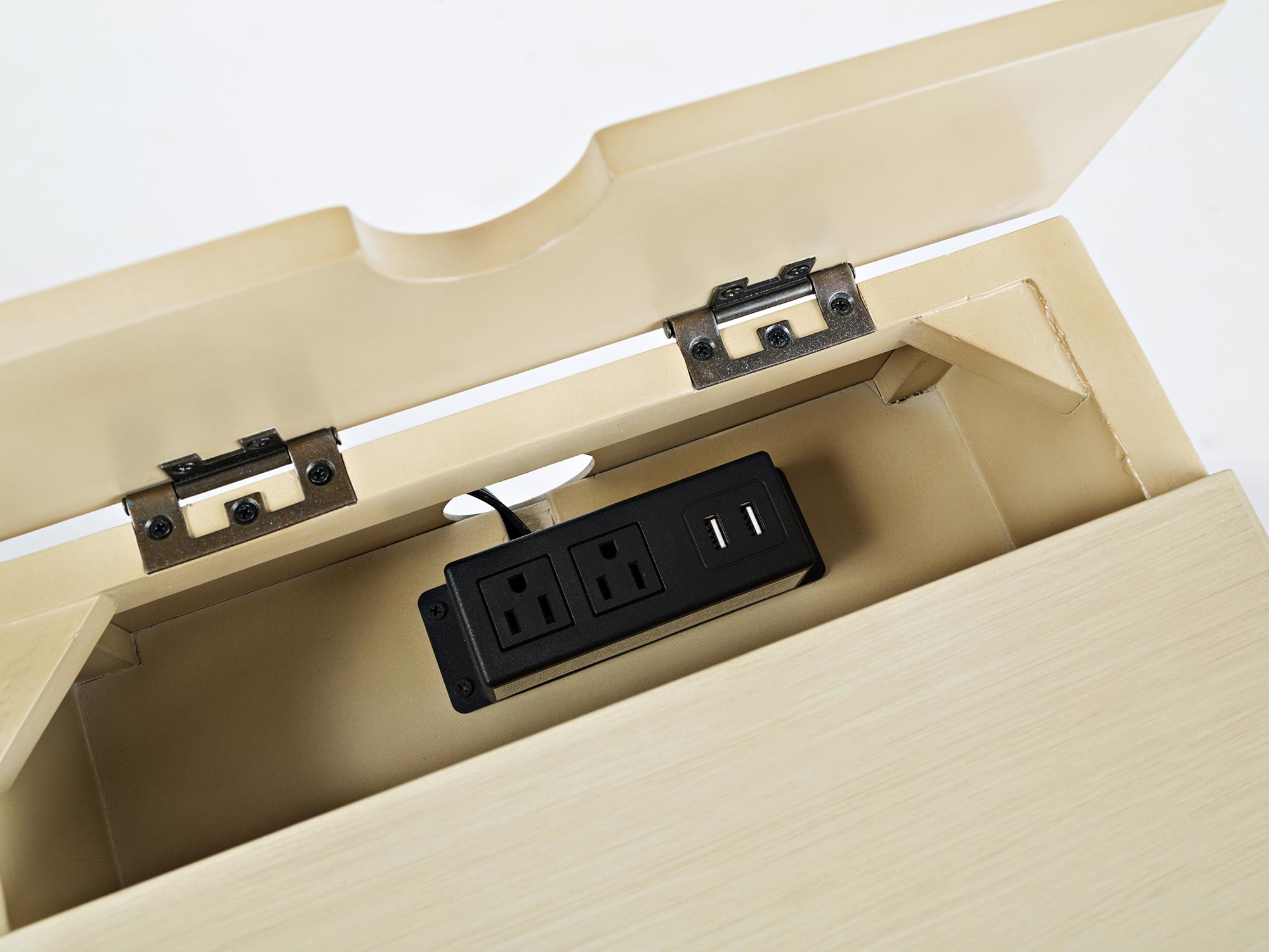 - Wbudowane gniazdo i port USB, umożliwiające wygodne ładowanie urządzeń mobilnych