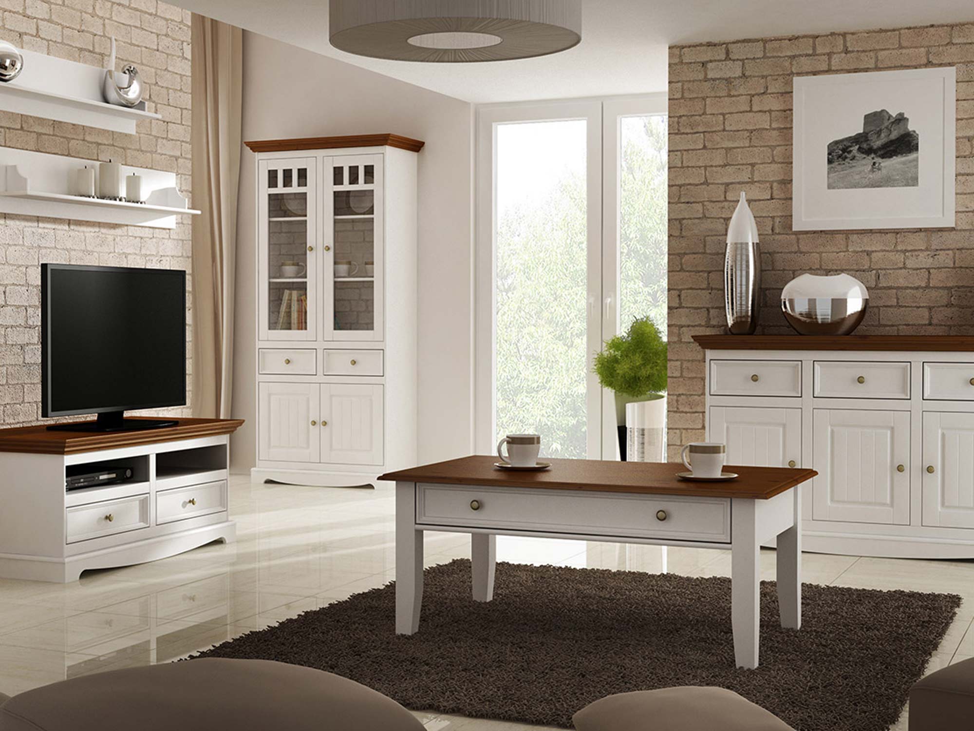 Oferowana drewniana biała szafka RTV mimo swoich małych gabarytów zapewnia wszystko czego potrzeba. Przede wszystkim zawiera niezbędną przestrzeń otwartą na zamontowanie dekoderów czy konsoli jak i dwie szuflady, gdzie można przechowywać płyty, piloty czy inne akcesoria. Dodatkowo blat pozwala zarówno na postawienie telewizora lub w przypadku powieszenia go, wyeksponowanie drobnych dekoracji czy pamiątek rodzinnych. Co więcej metalowe uchwyty w kolorze starego złota/srebra nadają meblu niepowtarzalny charakter. Ponadto subtelne frez, podstawa oraz wykończenie blatu na styl prowansalski to doskonała propozycja do każdego nowoczesnego wnętrza, która nawet z upływem lat i zmiany trendów nie utraci na swojej aktualności. Dodatkowo przedstawiona klasyczna biała szafka RTV w połączeniu z innymi meblami z serii INGRID pozwoli stworzyć przytulną, praktyczną, pełną elegancji przestrzeń.