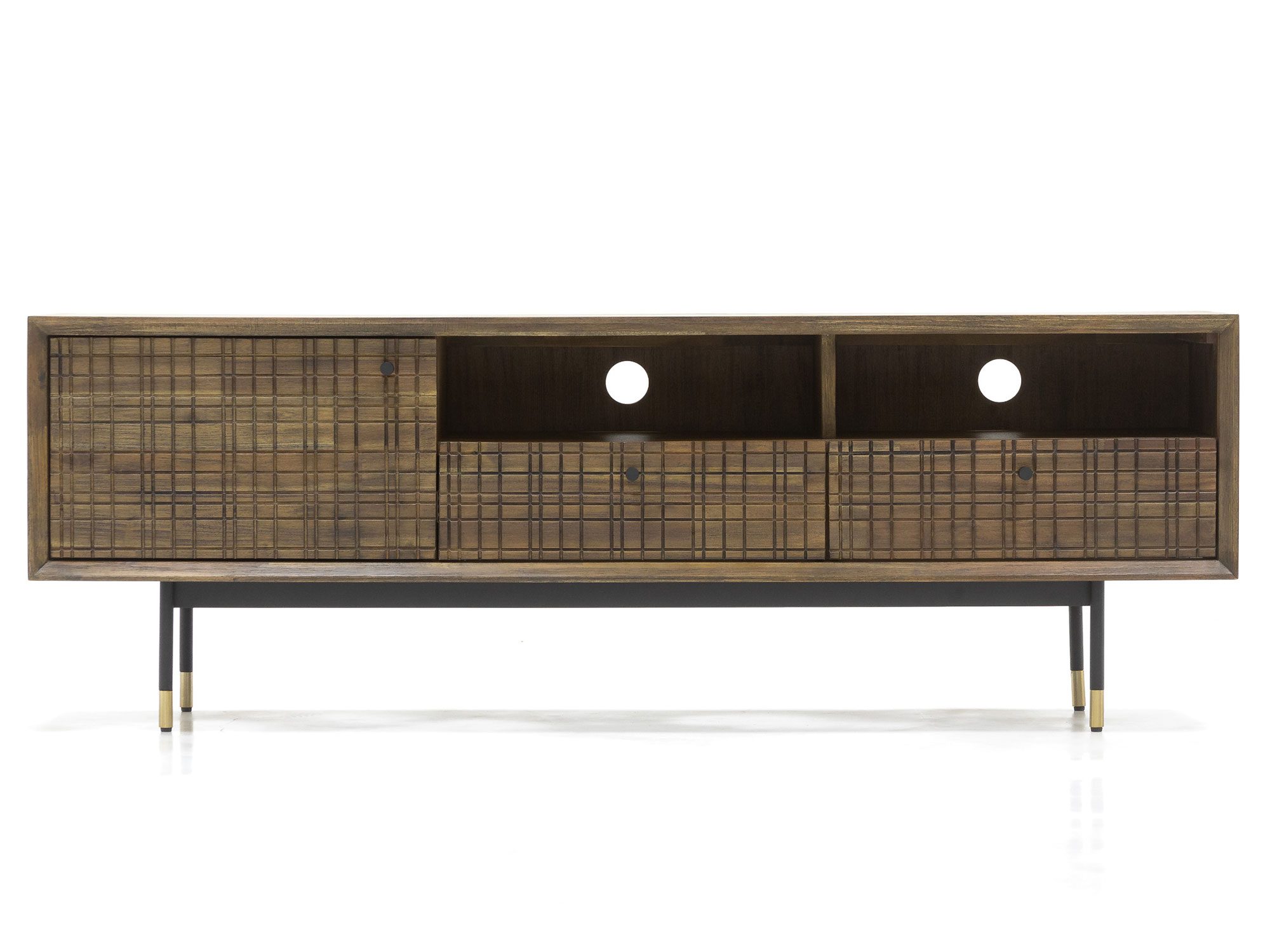 Komoda RTV drewniana retro z metalowymi akcentami – Enigma