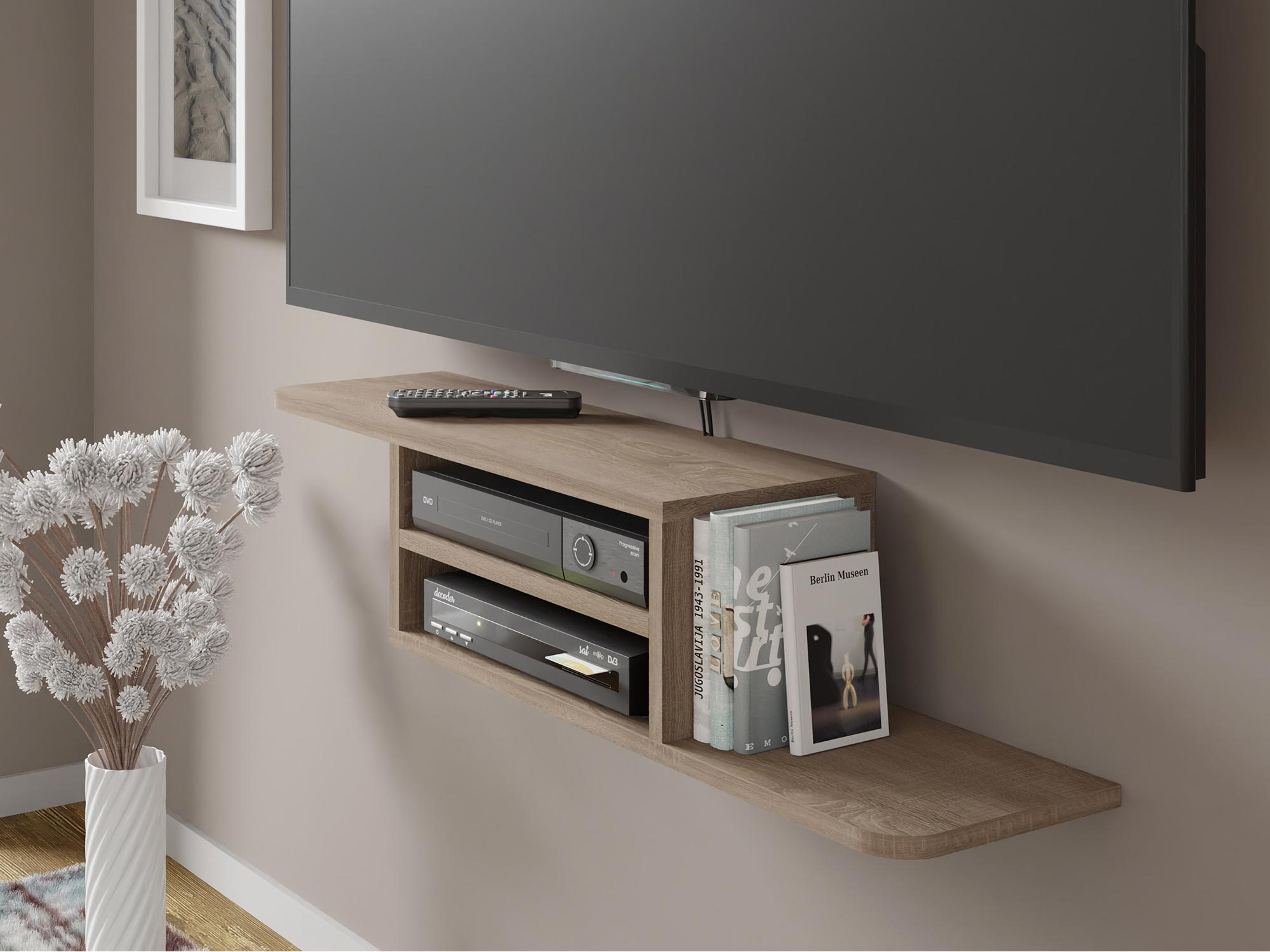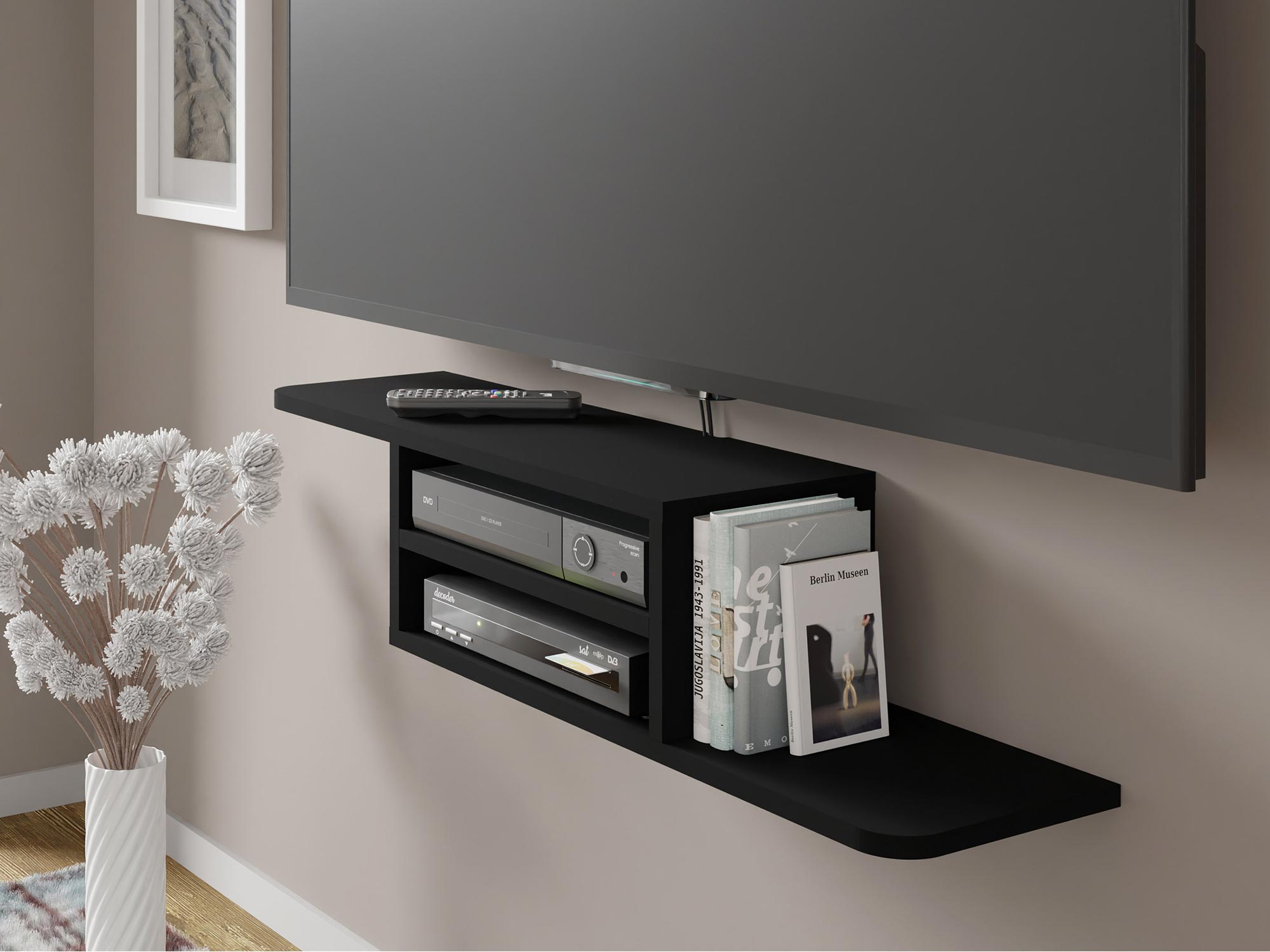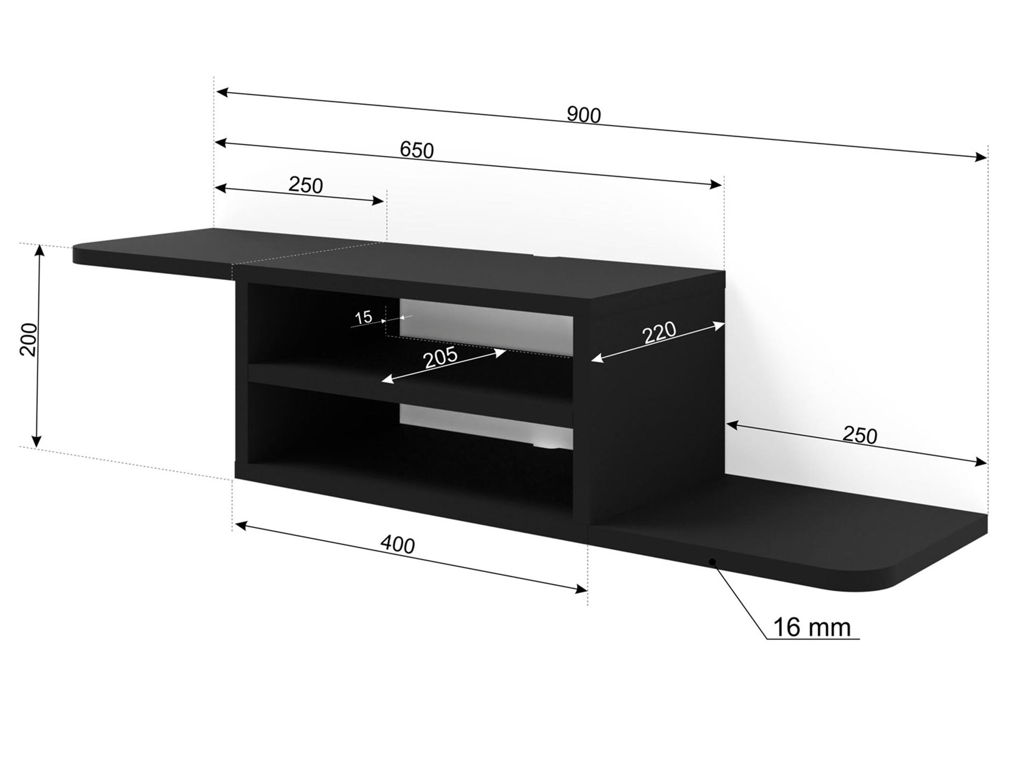 - Mebel może spełniać funkcję półki wiszącej lub półki pod TV.