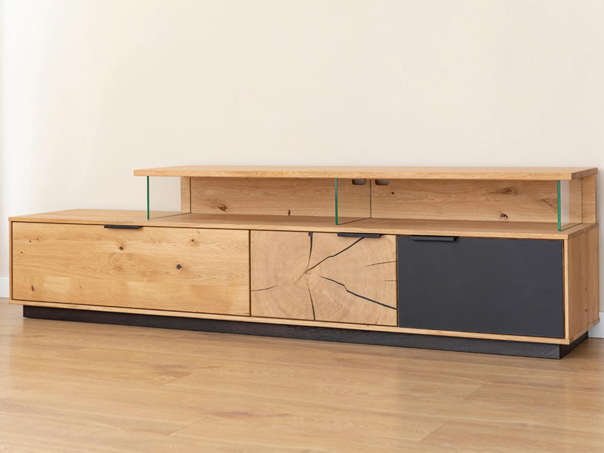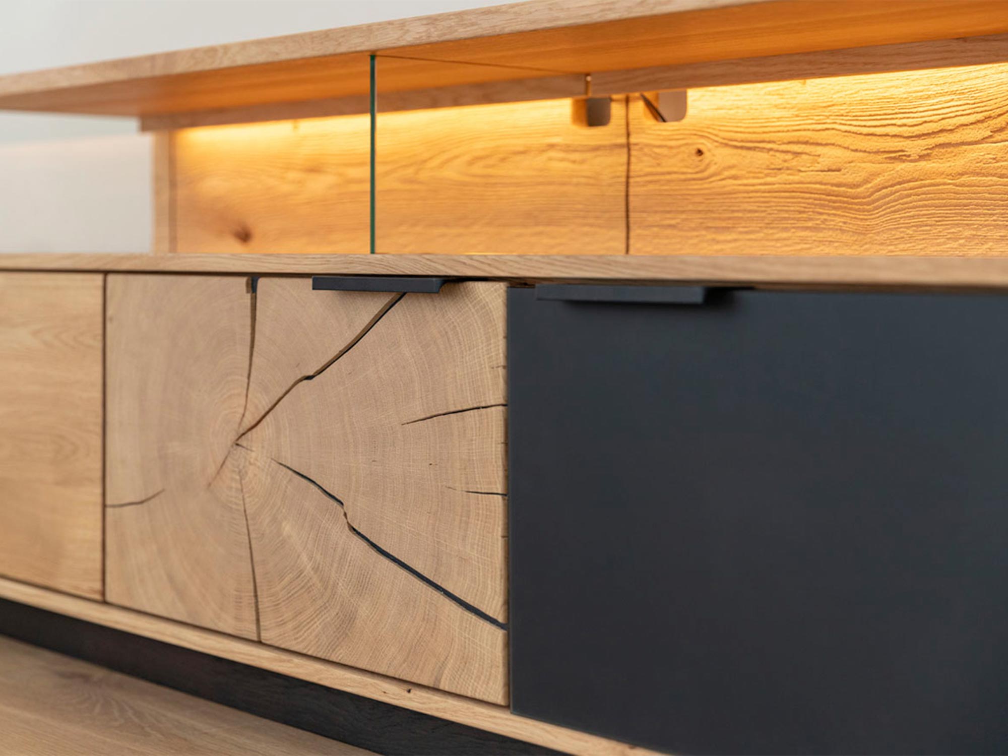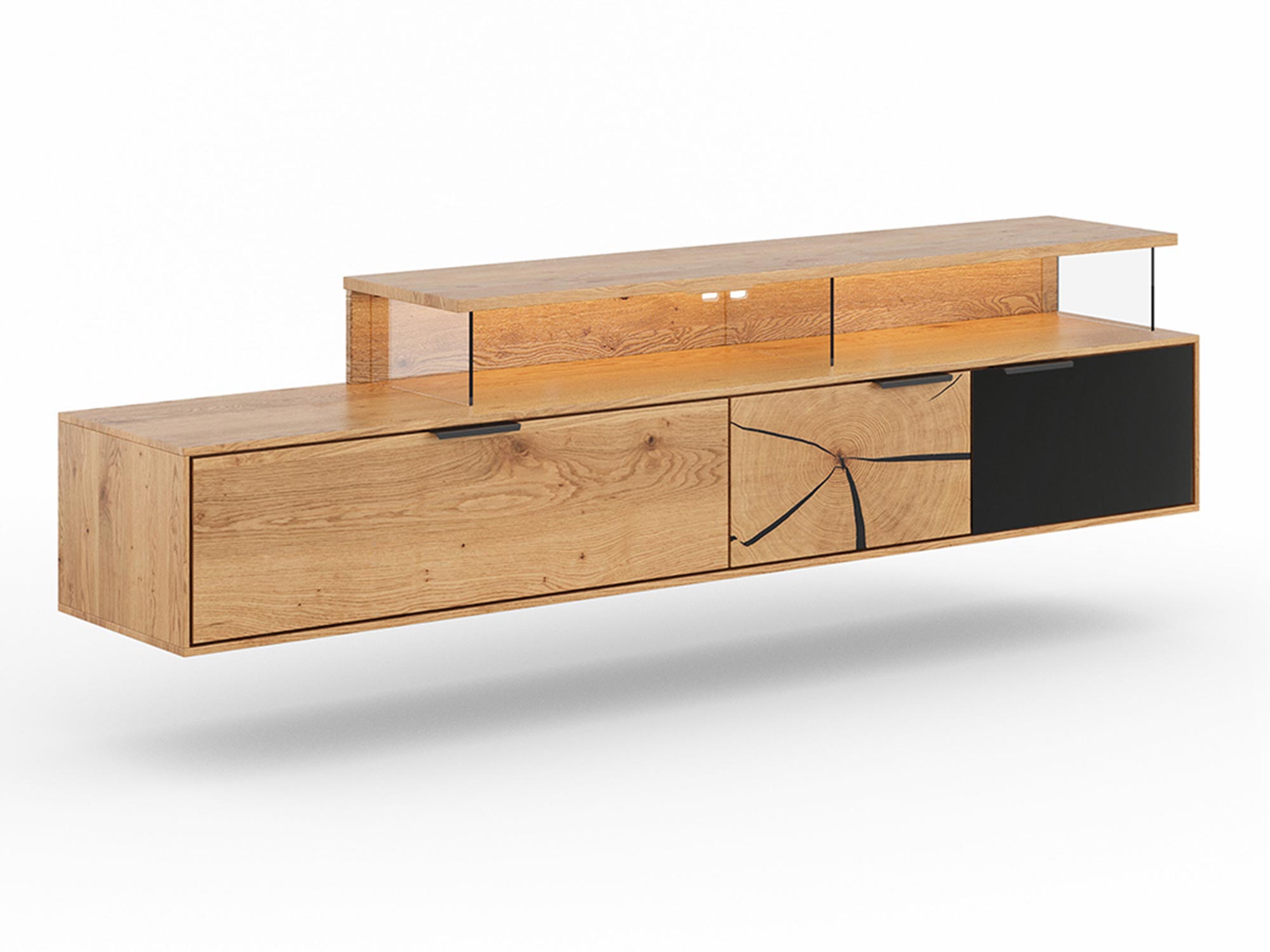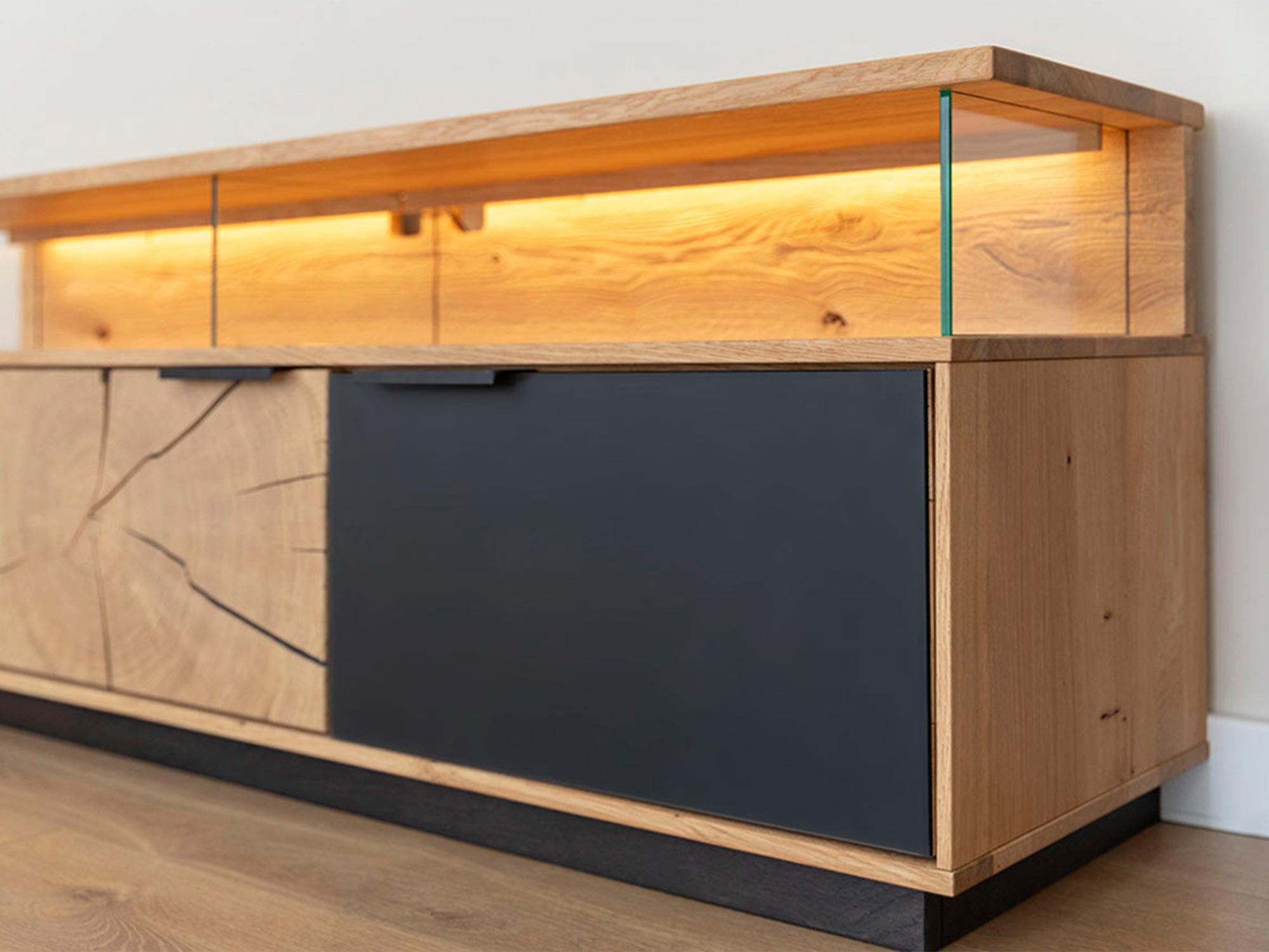 Szafka RTV dębowa z podświetleniem LED i industrialnym designem