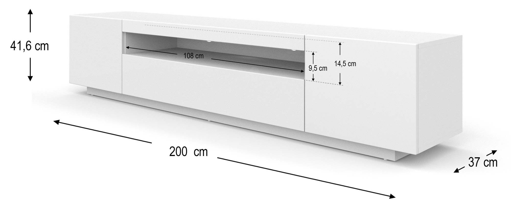 Przede wszystkim oferowana szafka RTV 200 LUMA charakteryzuje się zarówno wysokimi walorami estetycznymi jak i duża praktycznością. Duża wnęka podświetlana oświetleniem LED pozwala na zamontowanie niezbędnych dekoderów oraz konsoli. Co więcej, trzy pojemne szafki to z kolei dodatkowa przestrzeń na przechowywanie, co jest bardzo funkcjonalnym rozwiązaniem. Ponadto, mebel dostępny jest w kilku wersjach kolorystycznych, zaczynając od klasycznego białego aż po nieszablonowe połączenie czerni z dębem artisan. Z tego względu niewątpliwie każdy znajdzie coś dla siebie. Dodatkowo brak uchwytów to nowoczesne rozwiązanie, które nie przytłacza mebla, co pozwala na uzyskanie schludnego oraz eleganckiego wnętrza.