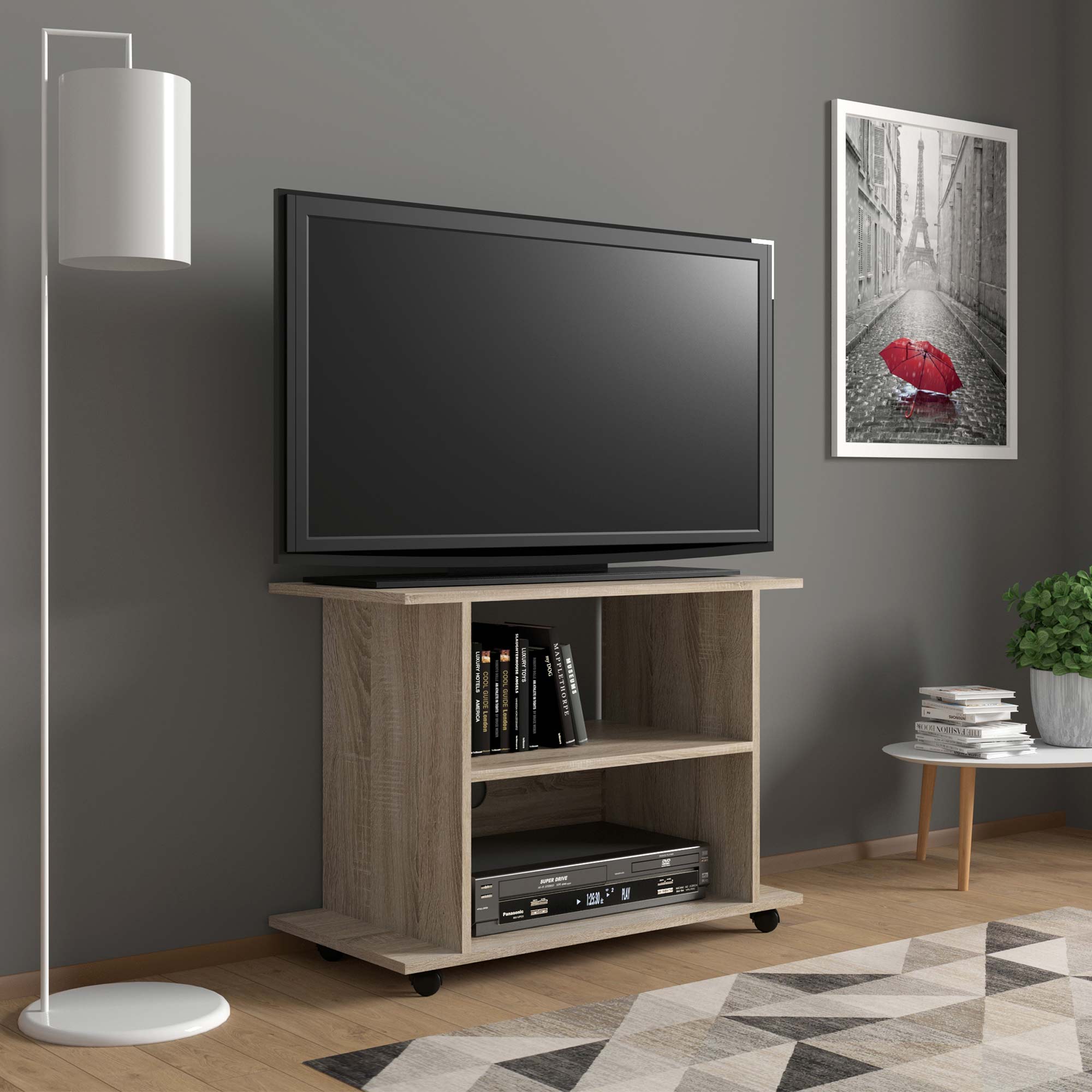 Co najważniejsze oferowana szafka RTV zawiera niekonwencjonalne rozwiązanie osadzenia mebla na kółkach. Pozwala to na swobodne postawienie mebla w dogodnym miejscu w przestrzeni. Niewątpliwie znakomicie sprawdzi się w mniejszych salonach, sypialniach oraz pokojach młodzieżowych.