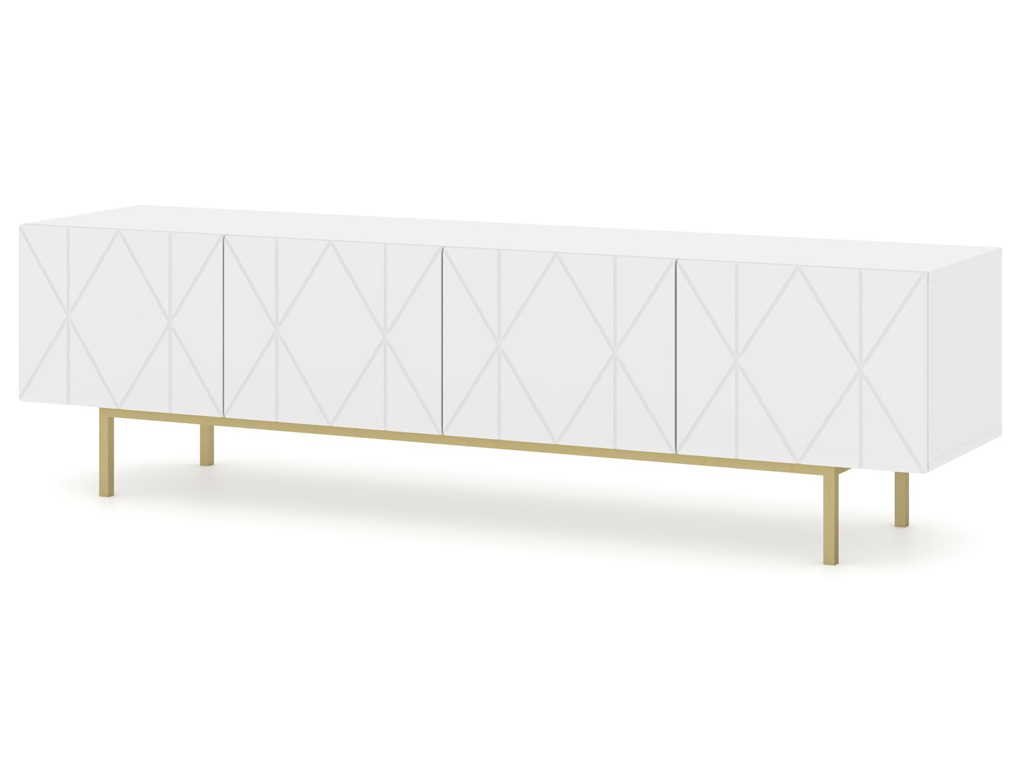 Nowoczesna biała komoda z geometrycznymi frontami i złotymi nóżkami