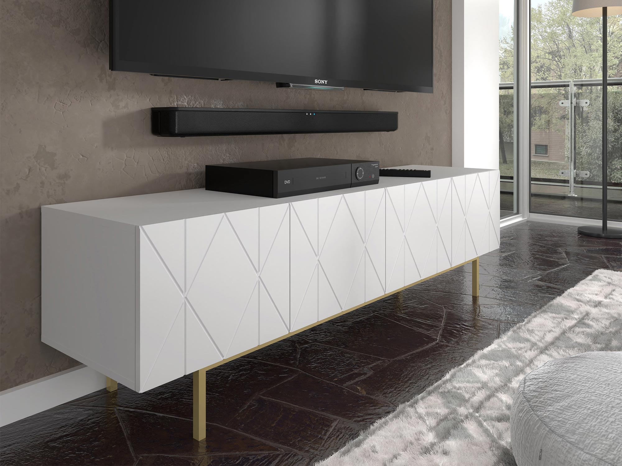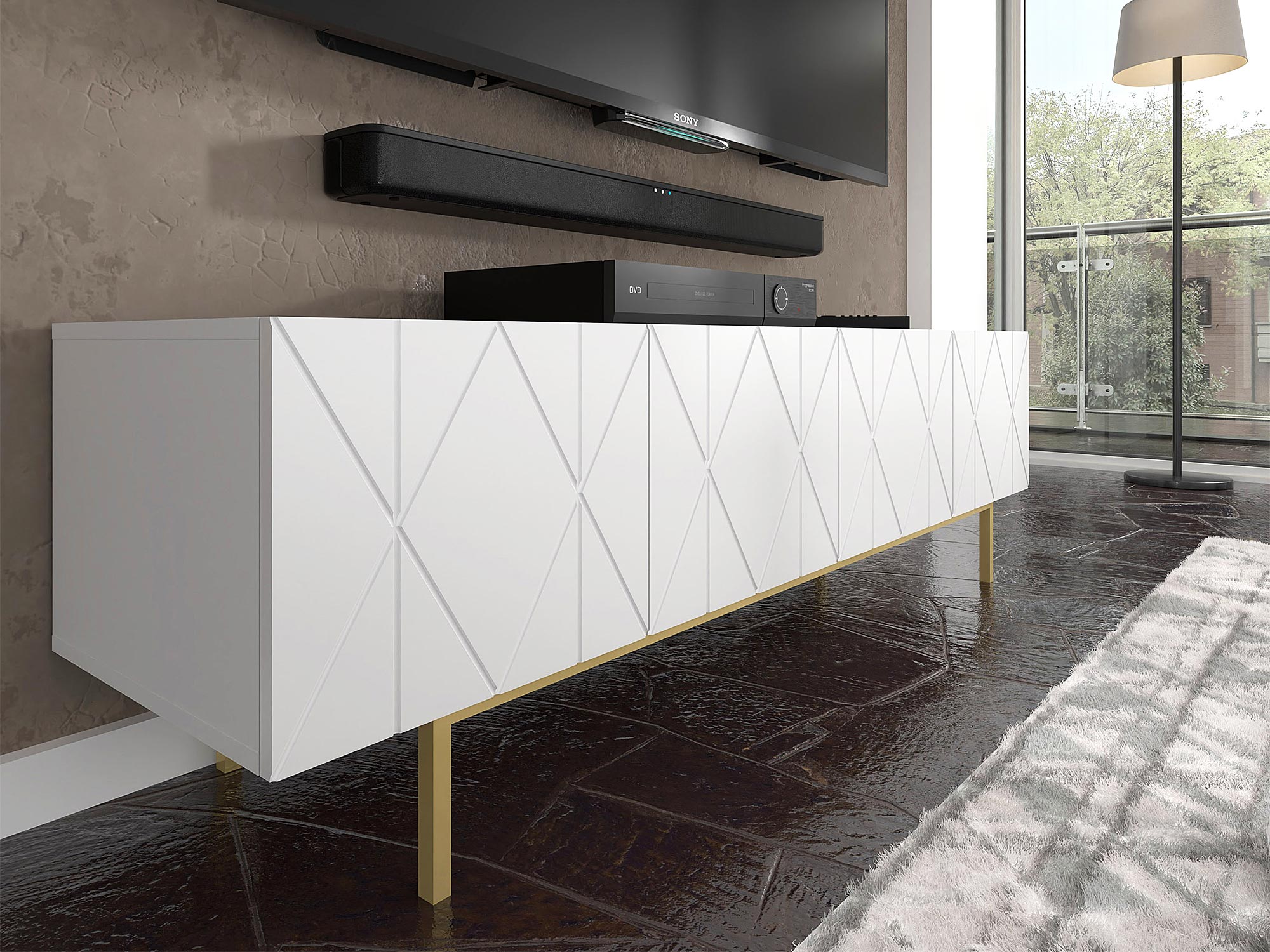 Stojąca Szafka RTV Livio ze Złotymi Nogami