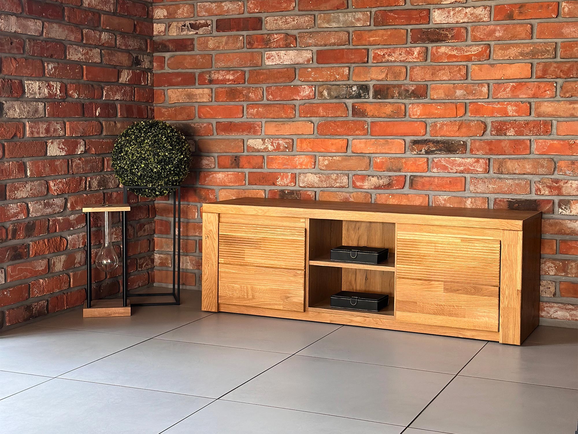 Dębowa szafka RTV z ryflowanym frontem