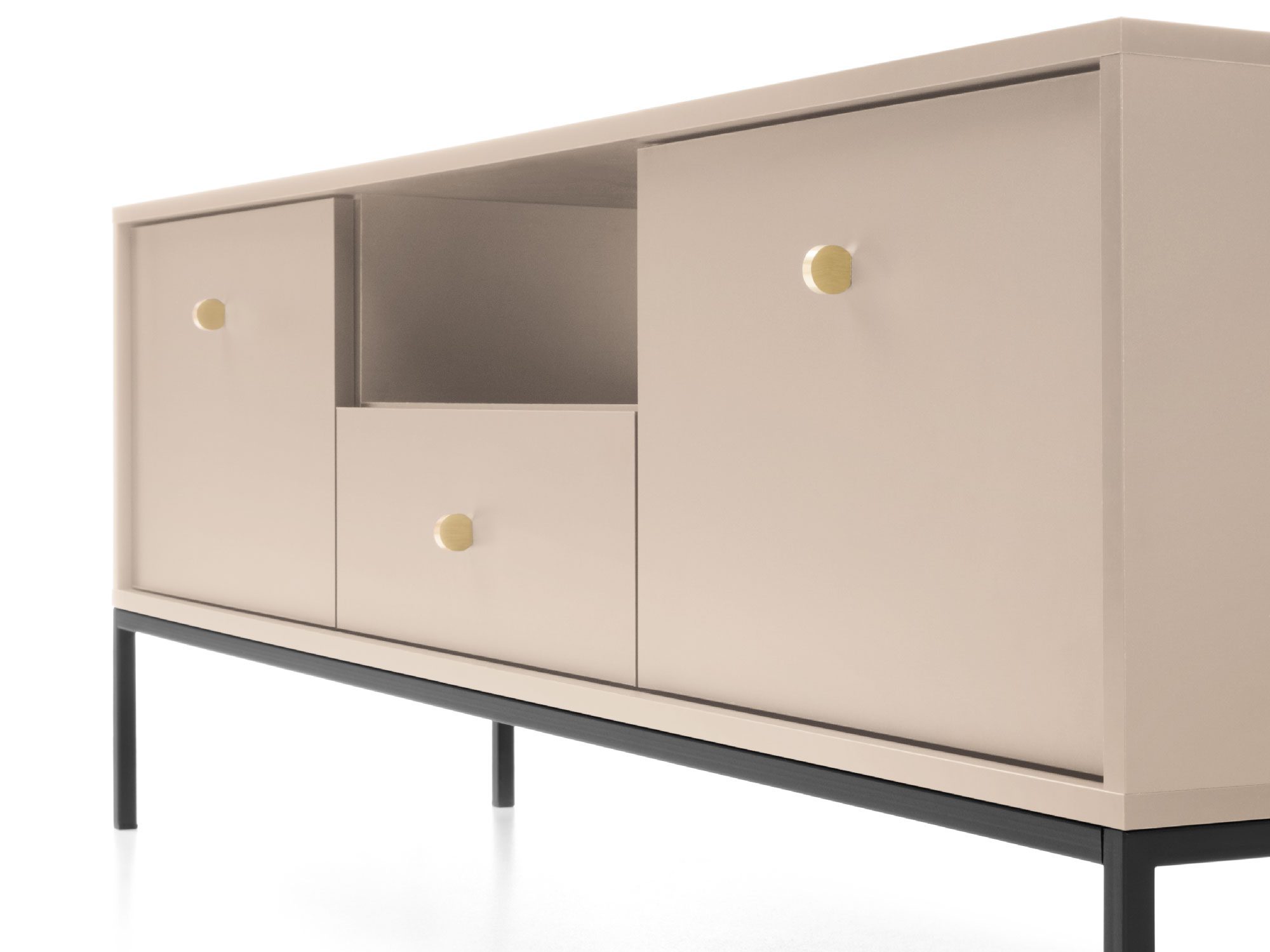 • Delikatna czarna podstawa: Nadaje meblowi lekkości i nowoczesnego wyglądu, jednocześnie zapewniając stabilność i trwałość.
