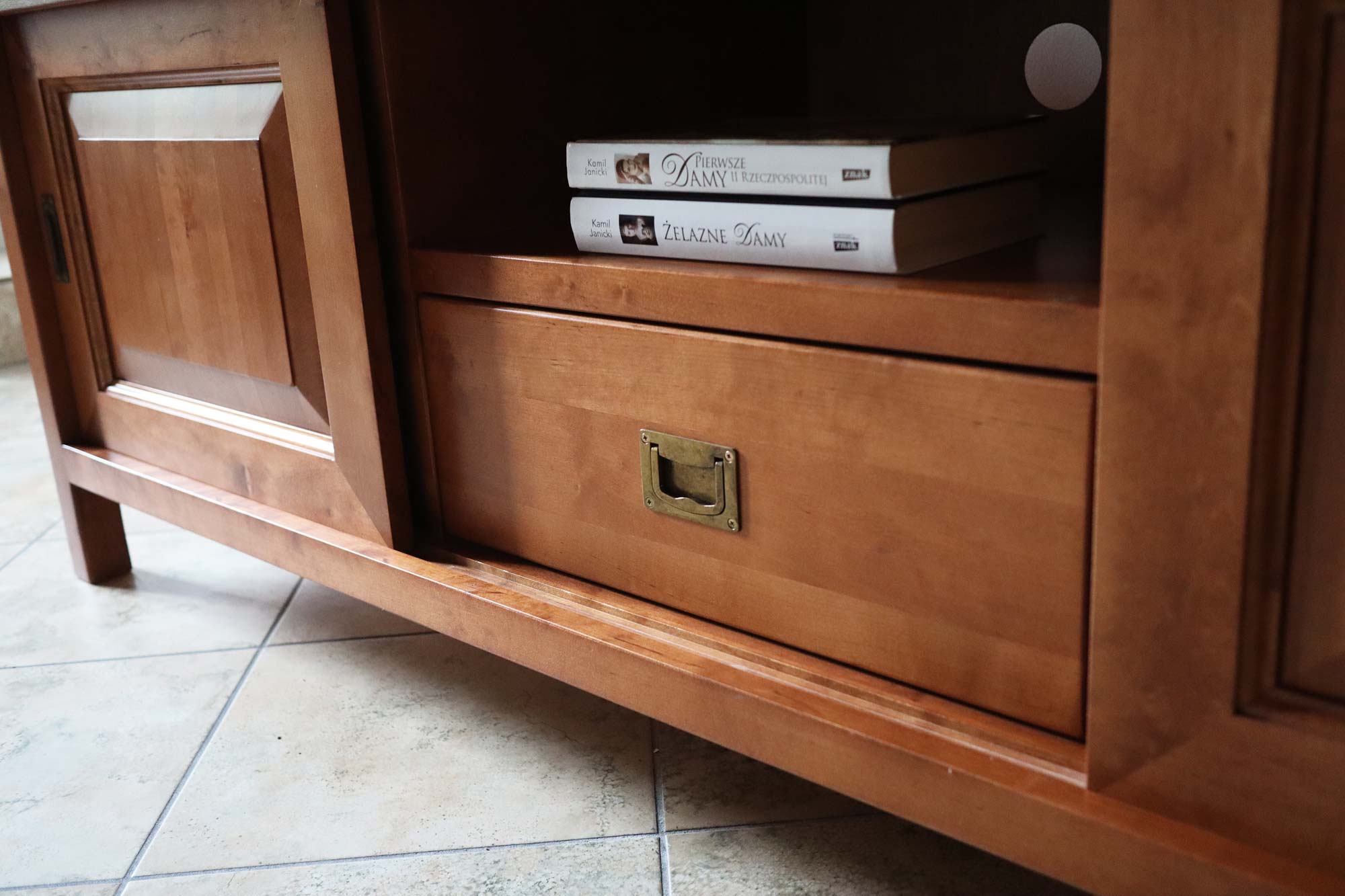 Przede wszystkim Szafka RTV z Drewna Długa MENDOZ to solidny mebel, który doskonale sprawdzi się we wnętrzu salonu. Ponadto wyprodukowana może być zarówno z wyjątkowo trwałego, naturalnego drewna brzozowego jak i dębowego, które gwarantują trwałość oraz stabilność konstrukcji mebla. Co więcej ten naturalny surowiec doskonale łączy ze sobą elegancję z funkcjonalnością tworząc niepowtarzalny charakter wnętrza. Mebel ten wyróżnia klasyczny design. Szafkę wyposażono w przesuwne drzwiczki po prawej i lewej stronie, w ich środku zamontowana jest także półka Ponadto posiada także szufladę i wnękę idealną na sprzęt audio. Dodatkowo mebel posiada okrągły otwór na kable w plecach każdej części. W zależności od potrzeb, można ją dowolnie zestawiać z pozostałymi meblami z kolekcji MENDOZ tworząc w ten sposób ciekawą, a zarazem ciepłą i przytulną aranżacje. Ponadto ten praktyczny i piękny mebel jest idealną propozycją dla najbardziej wymagających. Co najważniejsze ciekawy i nienachalny design trafi w gusta każdego miłośnika ponadczasowej klasyki i naturalności drewna. Duży rozmiar i praktyczność sprawia, że mebel ten jest niezwykle funkcjonalny.