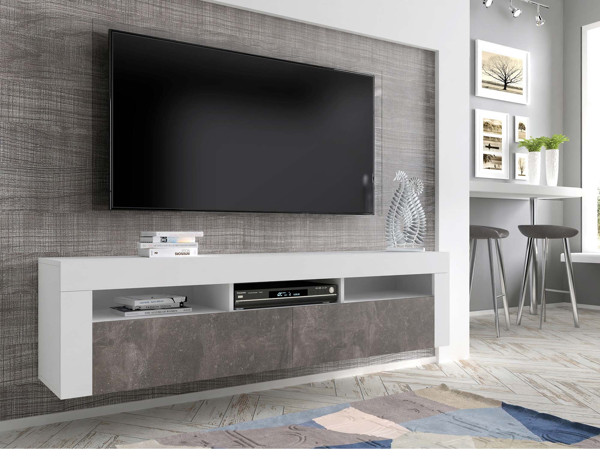 Szykowna szafka RTV do salonu biały ciemny beton wisząca KILIS