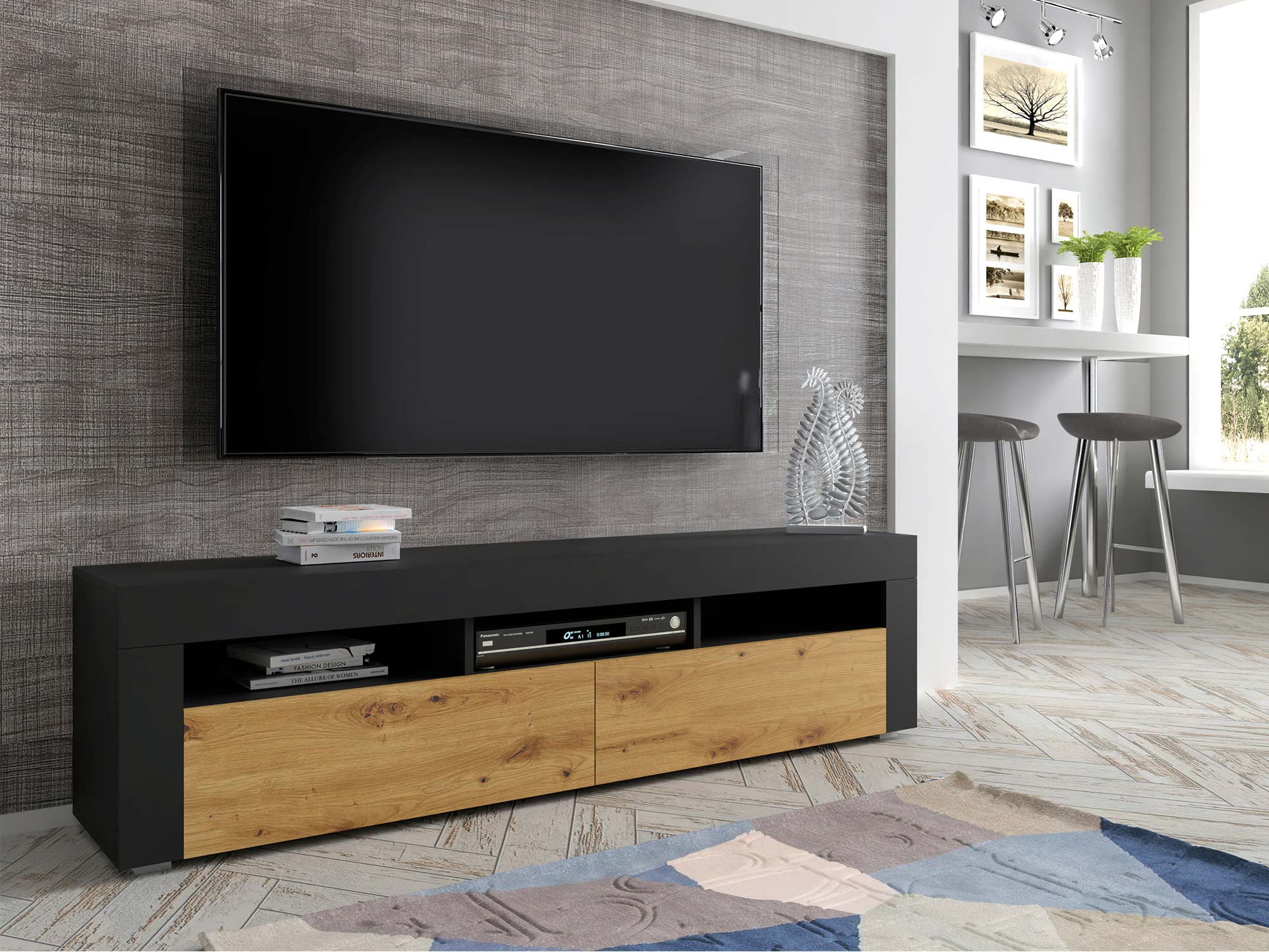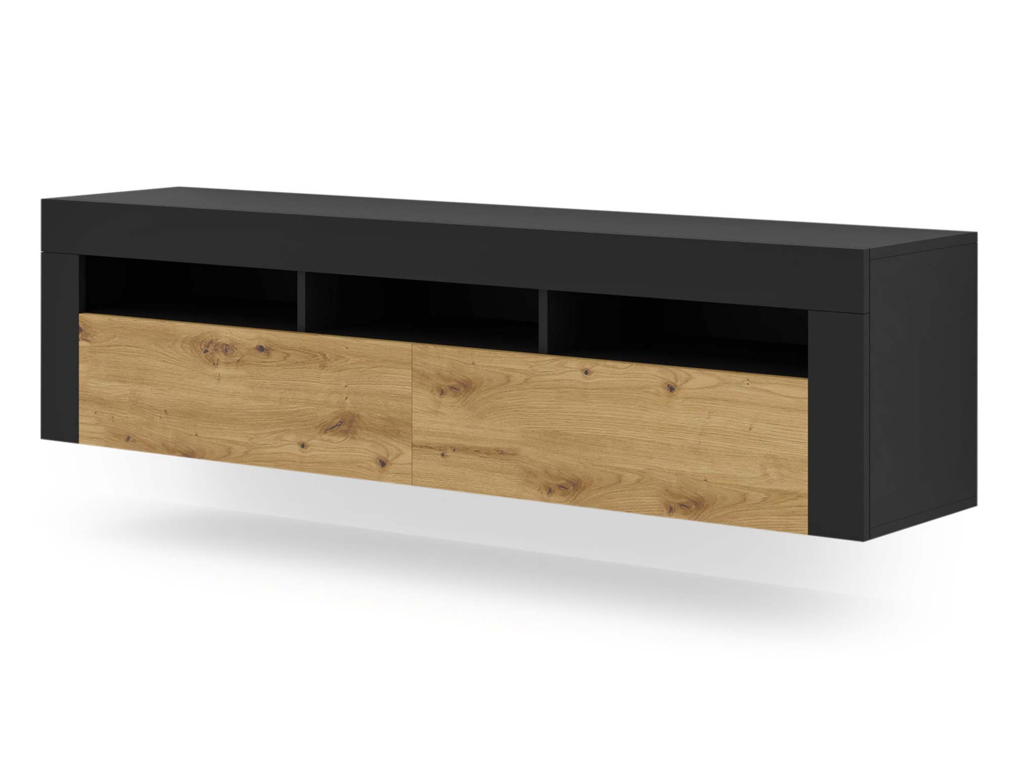 Szykowna szafka RTV do salonu czarny artisan wisząca KILIS