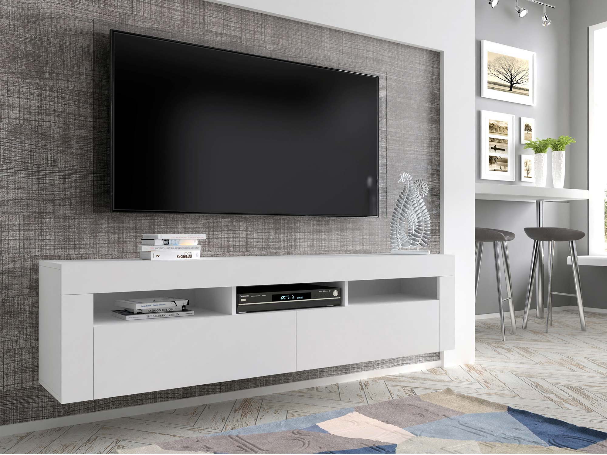 Przede wszystkim prezentowana szafka RTV jest dostępna w wielu wariantach kolorystycznych. Z tego względu można z łatwością stworzyć zarówno klasyczną jak i unikalną przestrzeń salonową. Co więcej trzy wnęki pozwalają na umieszczenie niezbędnych dekoderów czy konsoli jak i drobnych dekoracji. Dodatkowo przedzielona przestrzeń zamknięta to dodatkowa przestrzeń na przechowywanie, co zdecydowanie może usprawnić organizację przestrzeni. Ponadto jest to mebel uniwersalny, dlatego można go podwiesić albo postawić, w zależności od aktualnych preferencji. Prosta bryła, piękne wykończenie oraz praktyczność tworzy schludny mebel idealnie wpasowujący się w nowoczesne wnętrza.
