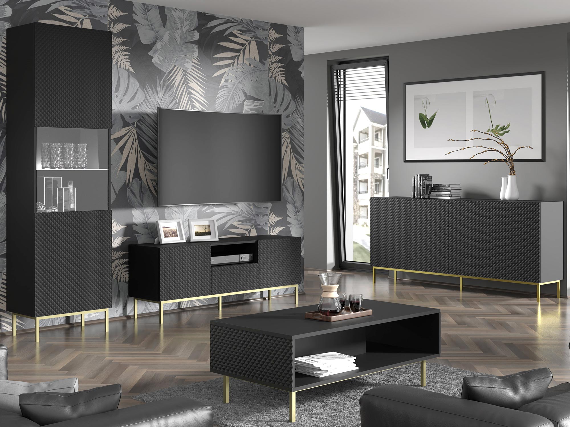 - Funkcjonalność: Szafka Navia oferuje dużo miejsca do przechowywania sprzętu elektronicznego, kabli i innych akcesoriów. Dzięki przemyślanemu rozkładowi półek i szuflad, łatwo utrzymasz porządek w swoim salonie.