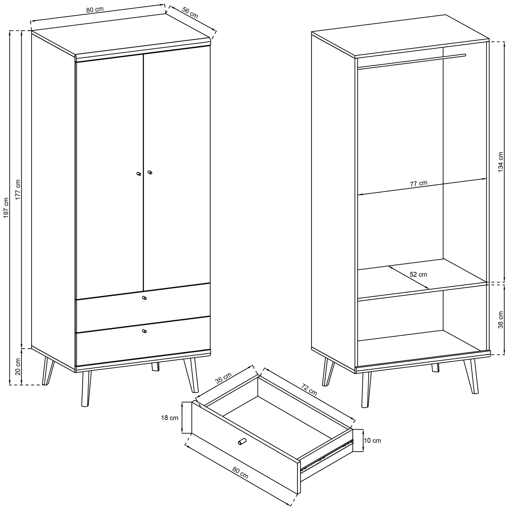 Wymiary 56 × 80 × 197 cm
