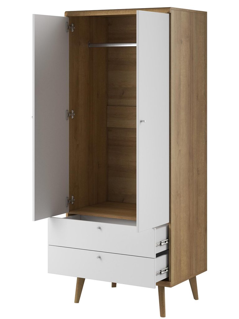 • Skandynawska elegancja – Prosty, ale wyrafinowany design szafy doskonale komponuje się z różnymi stylami wnętrzarskimi.