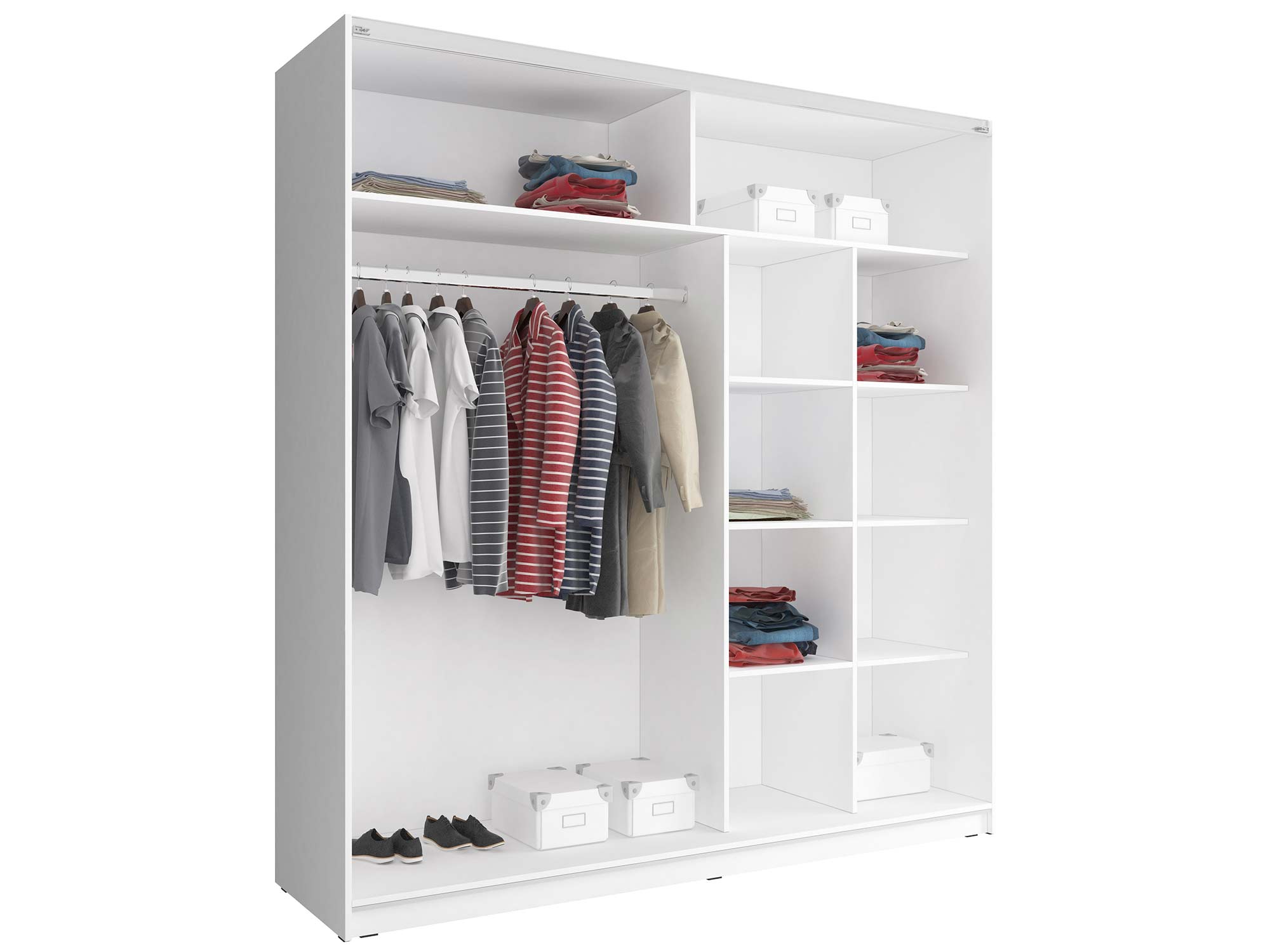 Szafa na ubrania z lustrami GAYA VI 200cm to propozycja dla osób lubujących się w nowoczesnej oraz funkcjonalnej stylistyce. Ponadto drzwi przesuwne są nie tylko modne, ale także praktyczne, gdyż dodatkowa przestrzeń na otwarcie szafy nie jest wymagana. Wewnątrz znajduje się drążek oraz półki, które można swobodnie zapełnić wszelkimi elementami garderoby.
